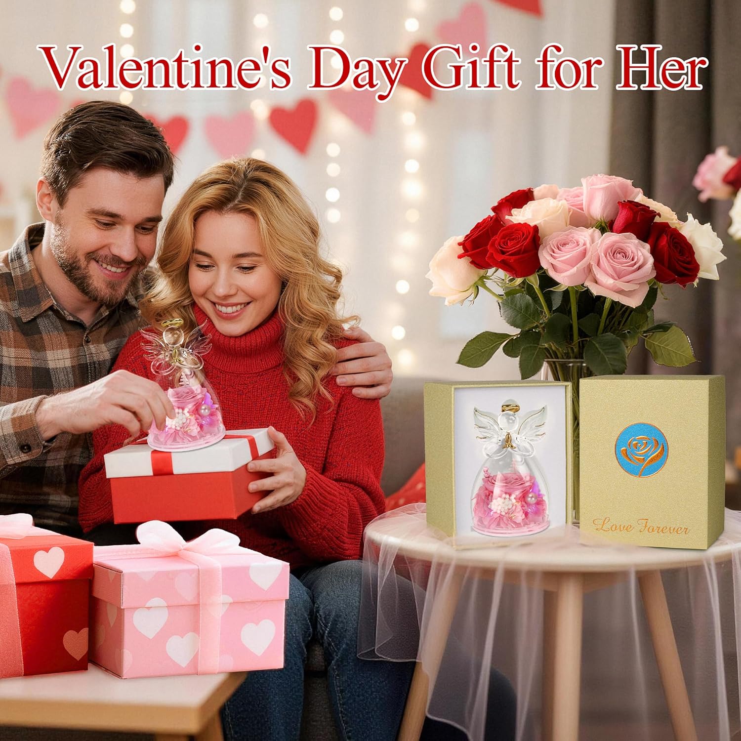 - Wonderful Valentines Day Gifts for Her Women Mom:Valentines Day gifts for wife,Best angel rose gifts from daughter,birthday gifts for women who have everything. Anniversary gifts for wife. Glass Angel Figurines with Real Pink Rose is a lovely gift that will be cherished by anyone who is special to the giver. Best Valentines Day gifts for women. Anniversary,Birthday,Christmas or Wedding decorations. Light up rose flower with colorful light in glass angel figurines is great Valentines Day gifts for wife or anyone who loves angels,flowers and Pink