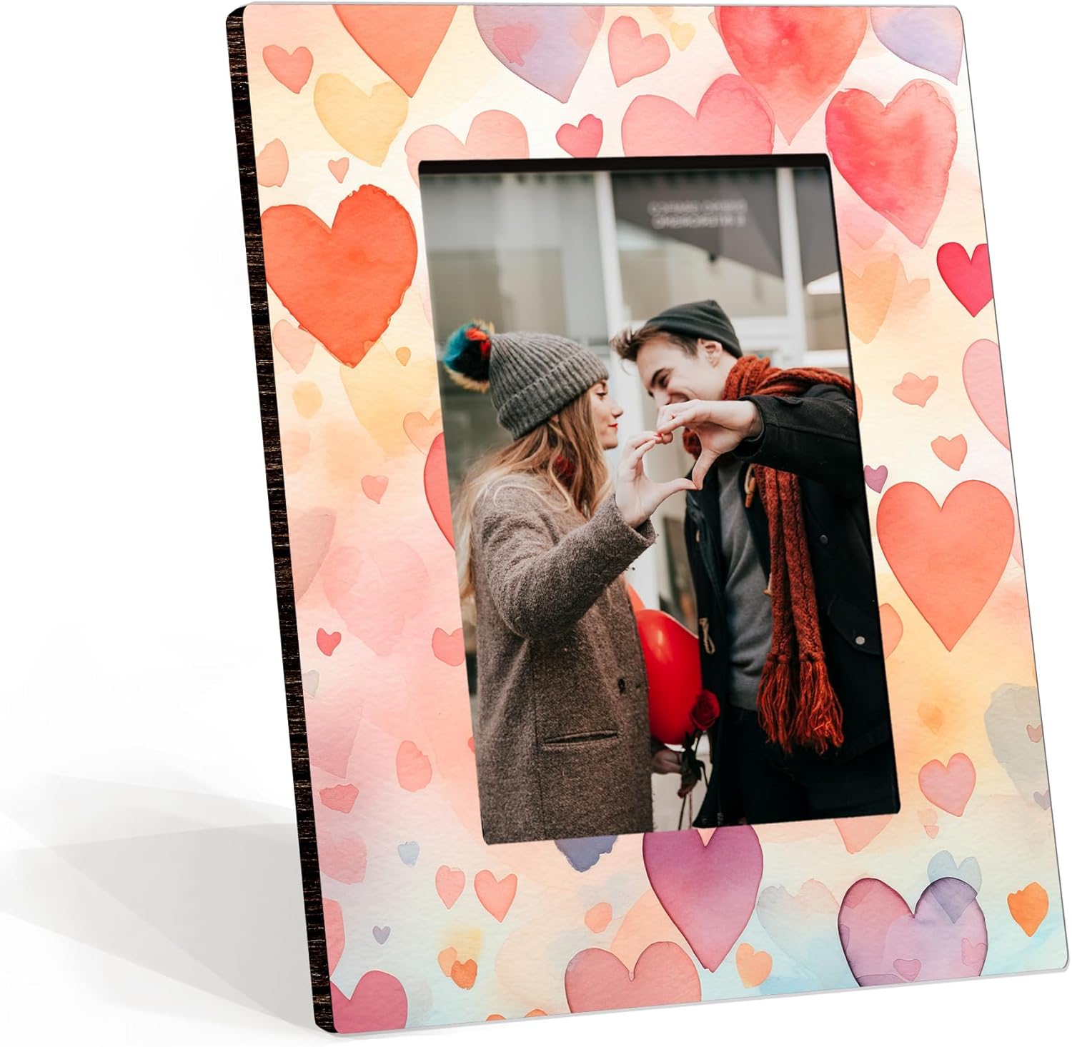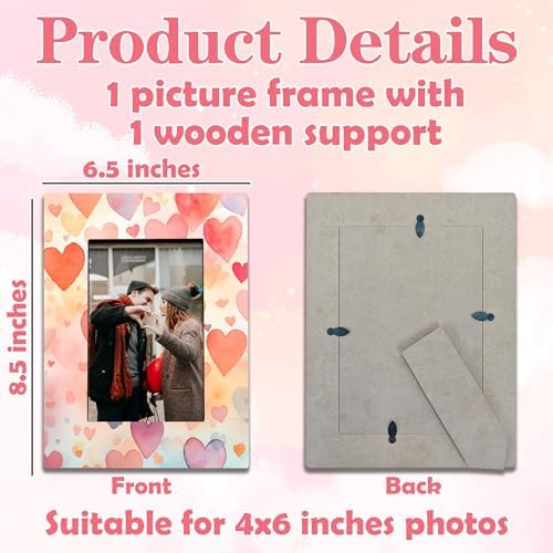 Size: The picture frame measures about 8.5 x 6.5 inches,you can put your 4 x 6 inches photo when using it. Quantity: You can receive a package included 1 wooden picture frame with back stand. Quality: Our photo frame is made of density board, easy to assemble, The pattern is printed clearly and there is no odor, so you can use it with confidence. Application: It can be placed on the desktop very conveniently, whether it is in the office, home, or bedroom, etc., to preserve your wonderful moments and serve as a meaningful decoration. As a special gift for family, friends or colleagues