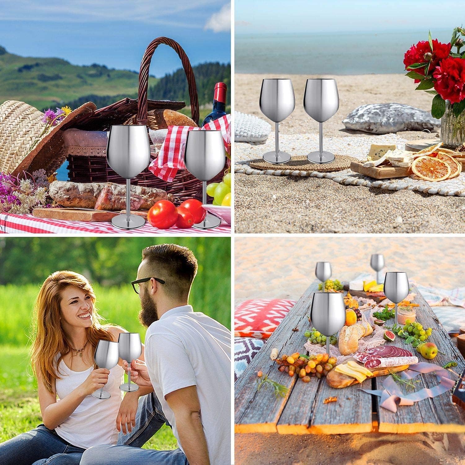 - [100% shatter-proof&Unbreakable]:Silver goblet BPA-FREE and shatterproof wine glasses are non-corrosive and suitable for all your favorite spirits. With their ability to keep drinks chilled longer than glass, Cabernets and Pinot Noirs will taste perfect from first sip to last.Gold plated, non-toxic, odorless, BPA free, OUTDOOR STEM WINE GLASS: 100% shatter-proof, our unbreakable wine glass is safe for pool parties, backyard BBQs Perfect for tipsy nights and a great time!