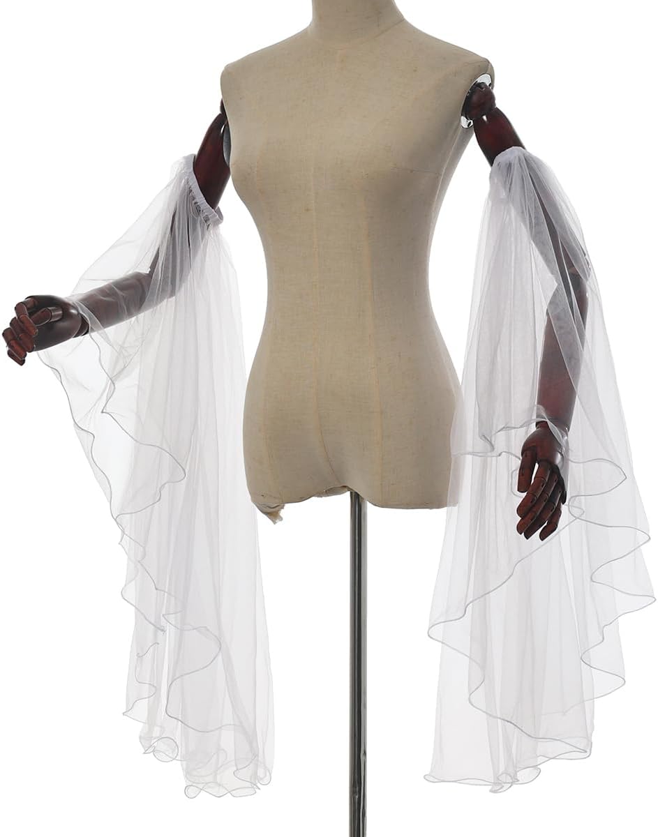 Victorian Long Tulle Gloves, Detachable Sleeves Gothic Wedding Dress Accessories Arm Covers for Halloween Costume