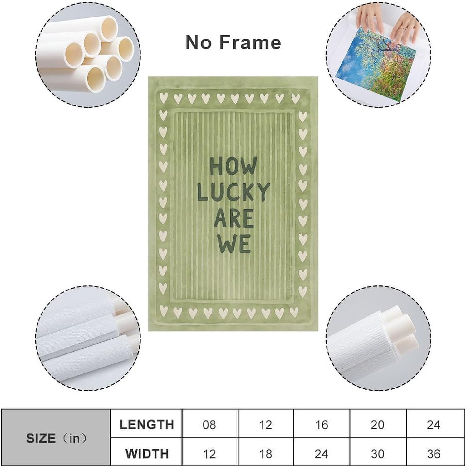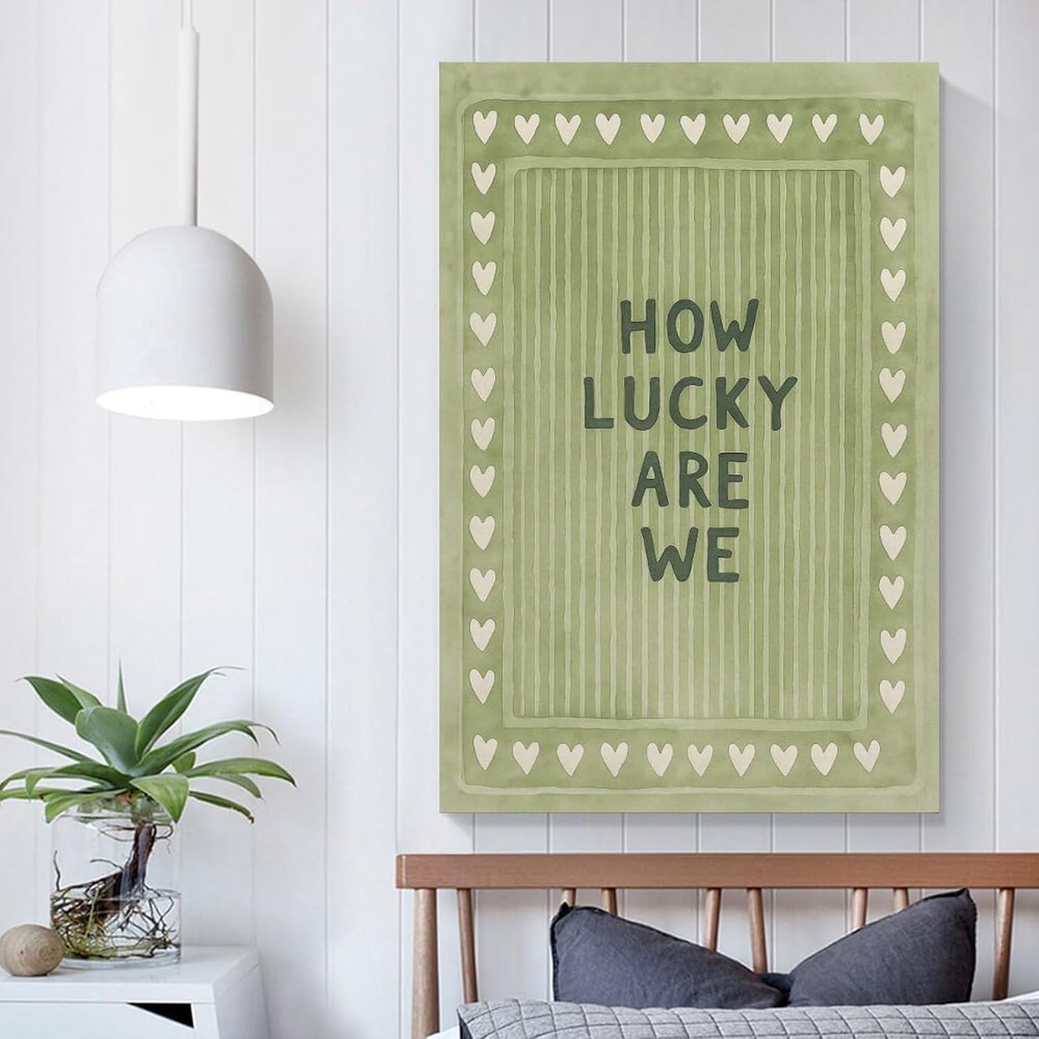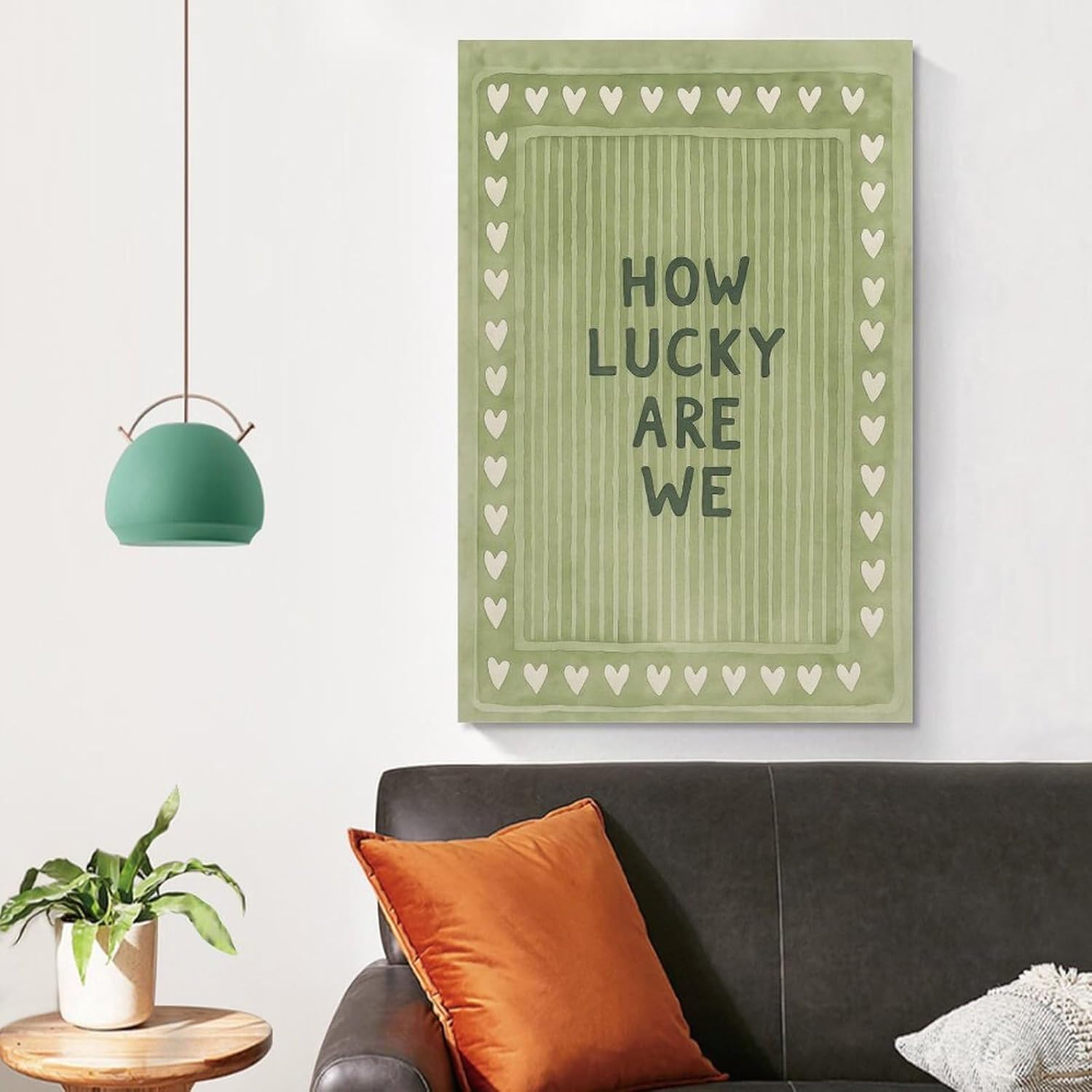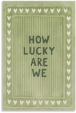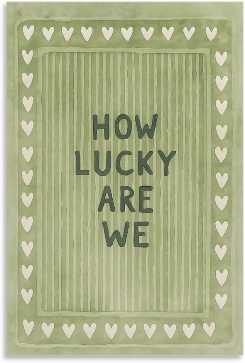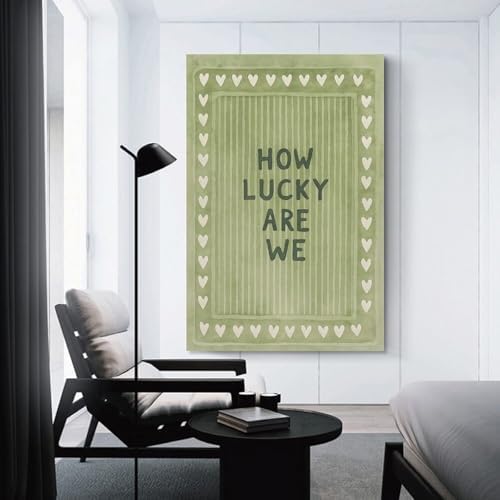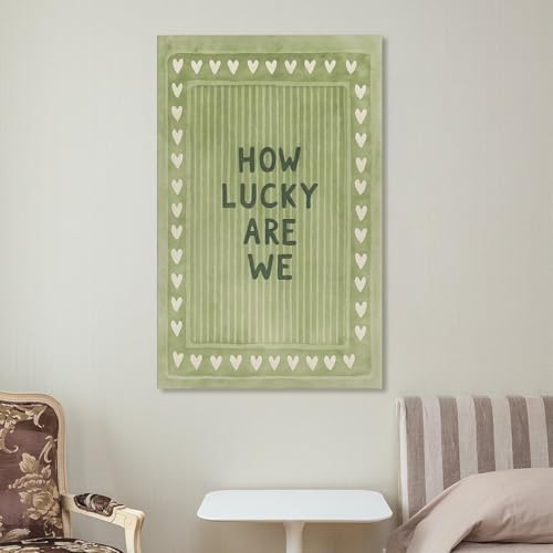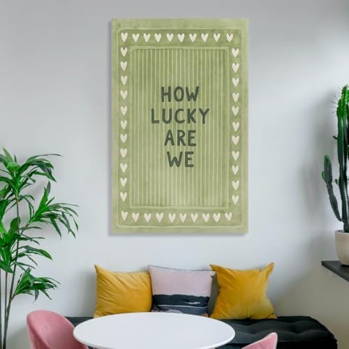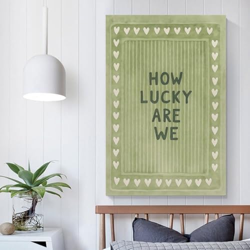 Vintage Green Striped Canvas Wall Art with The Lyrics How Lucky We Are in A Heart-shaped Quote. Canvas Poster Wall Art Picture Prints Hanging Photo Decor Home Posters Artworks 08x12inch(20x30cm)