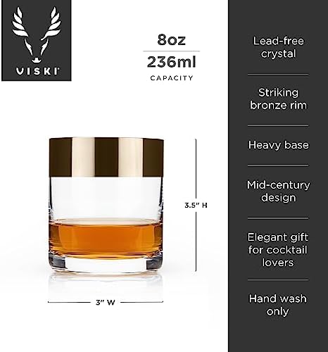 • STRIKING MID-CENTURY MODERN DESIGN – The rounded design and bronze rim of these whiskey glasses stand out from the crowed. Show off the whiskey in your tumbler with more style than the usual whiskey tumblers–your best liquor deserves the best glass.