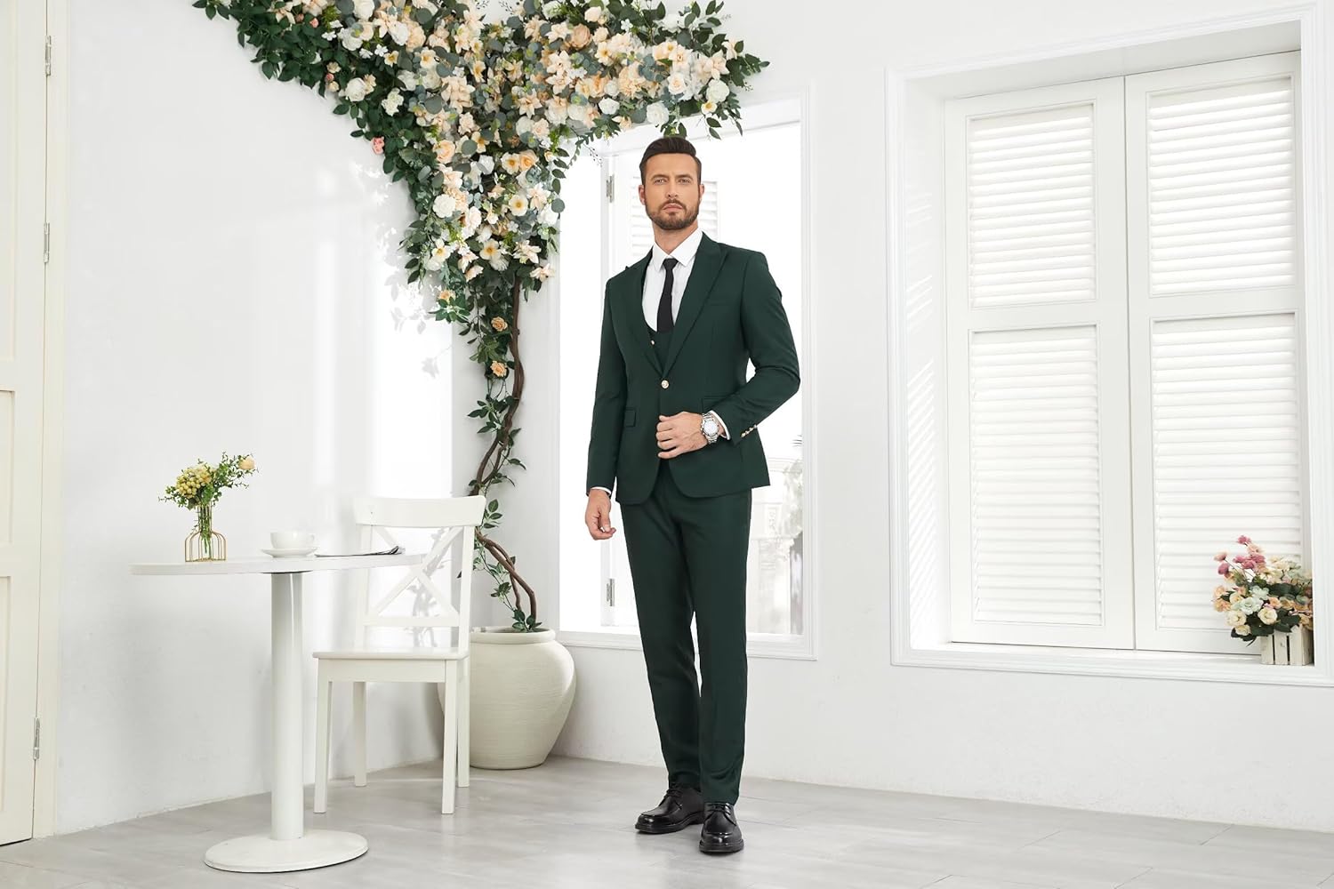 • Exquisite tailoring and design: Our men ‘s suits feature the one button and peaked lapel design, with striking golden buttons for an overall elegant look; The back of the jacket is defaulted to a single slit (double slits can be customized if needed), meeting personalized requirements. The slimming 3D stereoscopic cutting creates a smooth contour, highlighting the modern gentlemanly style.