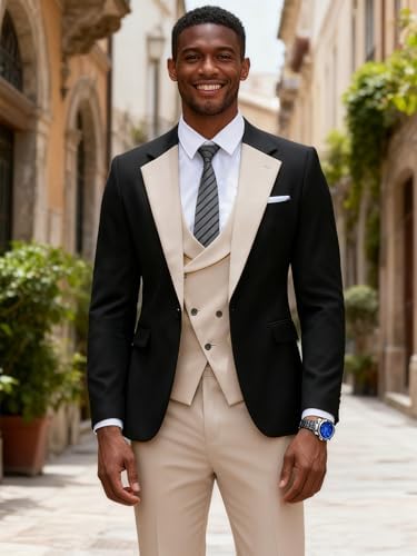 - 【Wangyue Mens Suit Occasion】– This Mens Suit Slim Fit Beige and Black Suit for Men is suitable for multiple occasions,such as wedding tux,daily use,business meeting prom tuxedos,fashion shows,groom suits,evening dress suits for ball parties,or grand holidays etc.