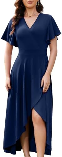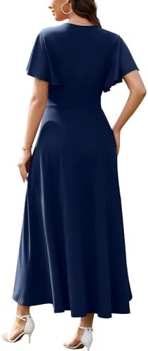 - Features:This long dresses for women, v-neck,special ruffled sleeves,slim wrap waist, a-line, long split design,elegant formal dress for women evening party soft and comfortable.