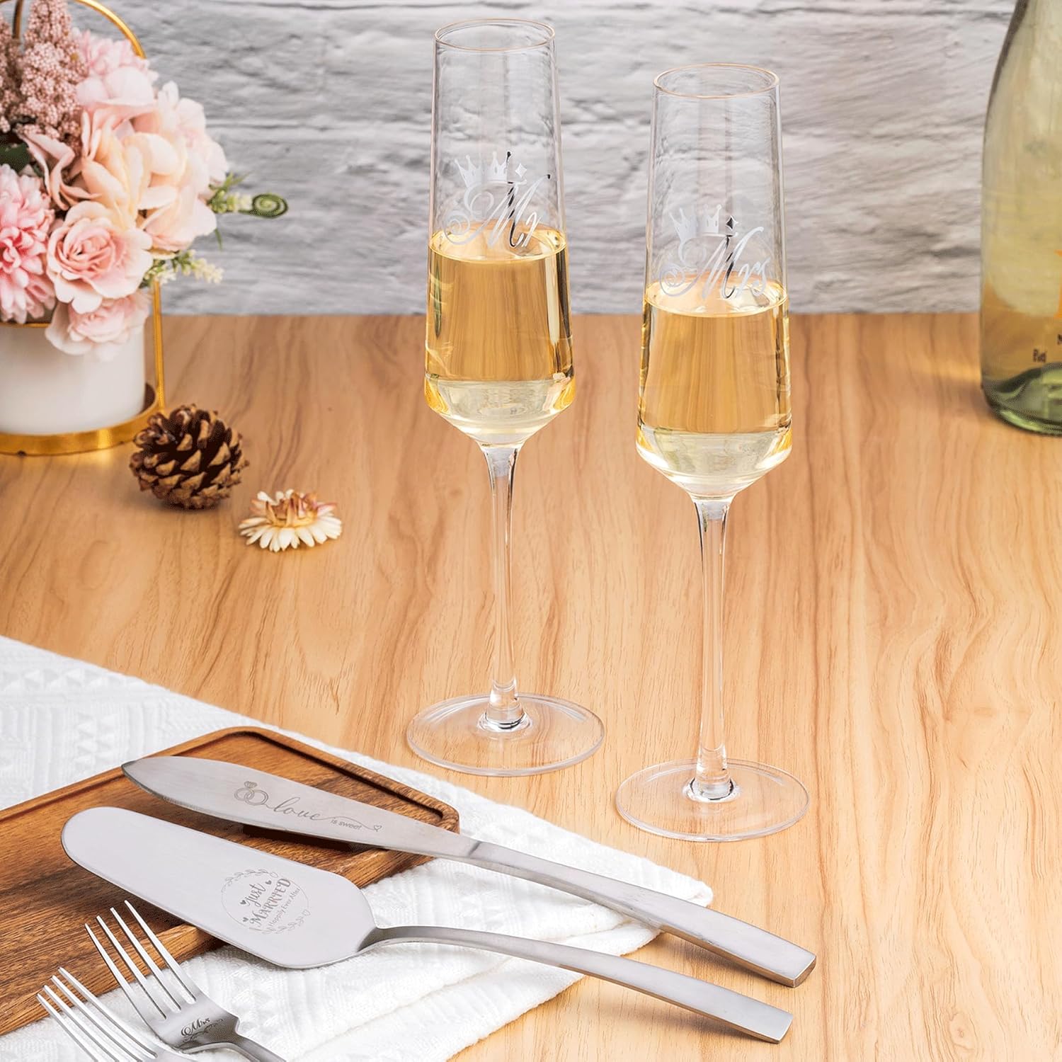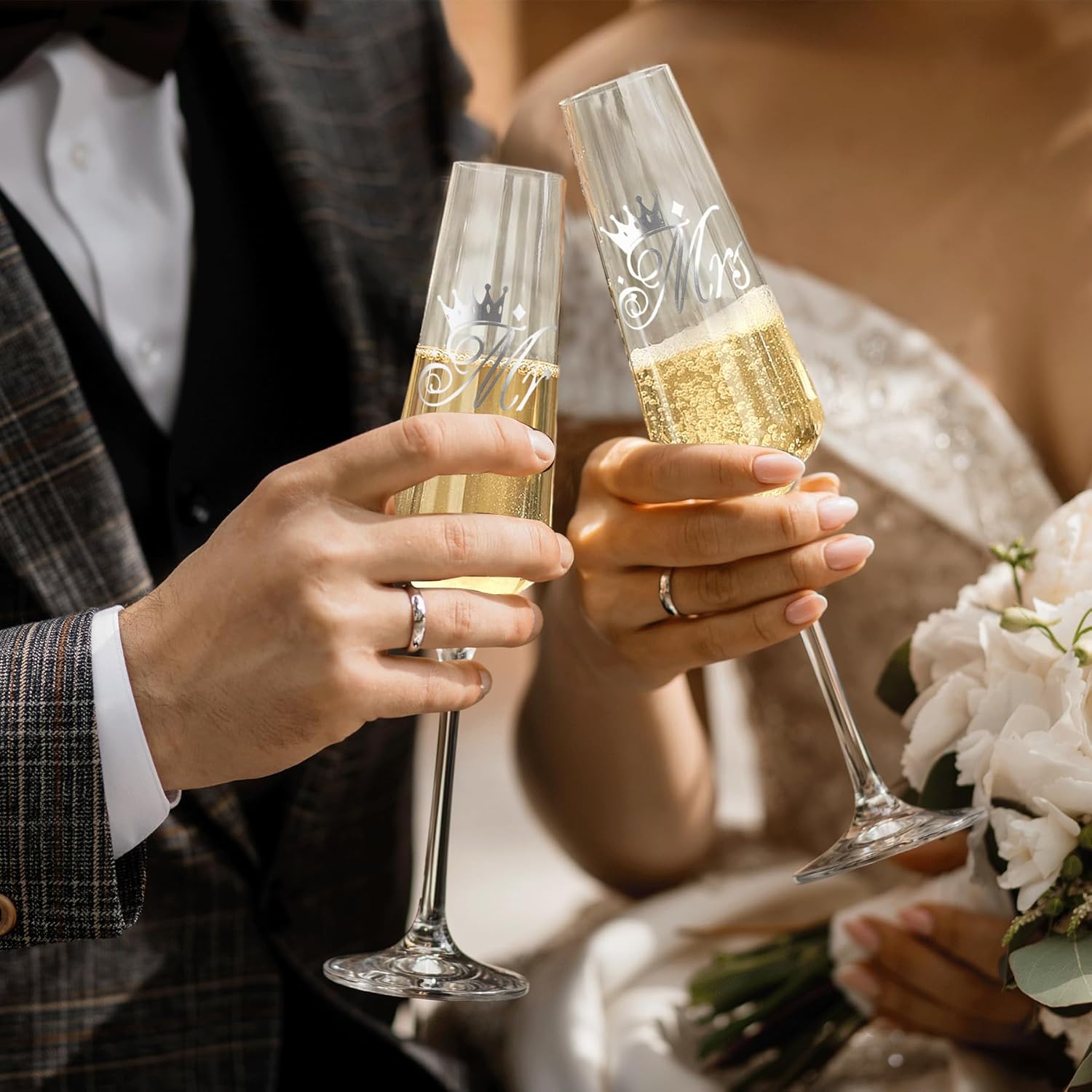 - 【Anniversary Gift for Couple】 Elevate your special moments with our enchanting mr and mrs champagne flutes. These remarkable champagne glasses capture the essence of love and celebration, making them the perfect gift for engagements, weddings, and anniversaries.