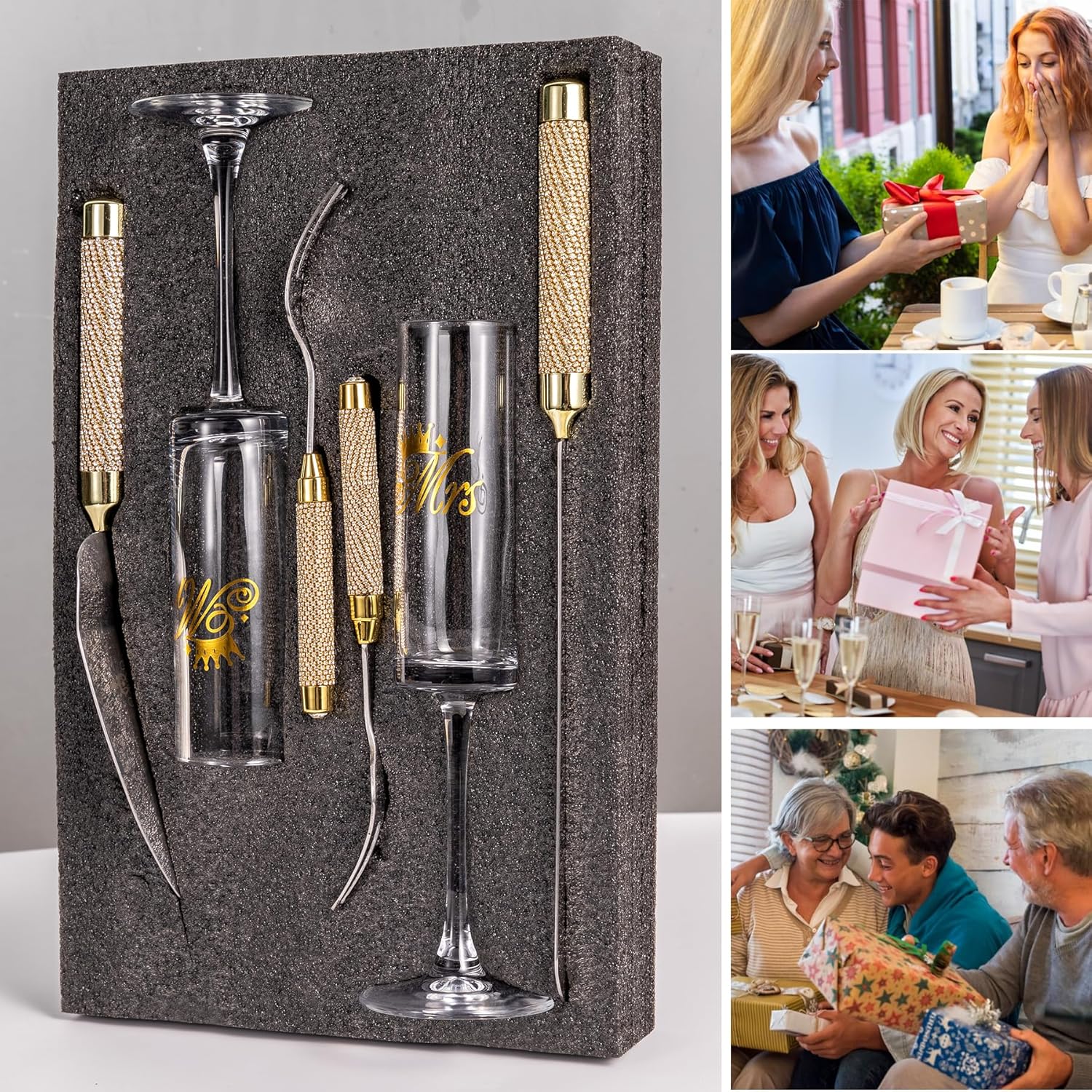 • Wedding Gifts for Couples 2024: A unique wedding gifts for the couples on many special occasions, or a great gifts for her/him to keep with your lover for years to com,These wedding champagne flutes and cake knife werver set are well packaged in a luxurious giftable box. It’s a bridal shower gifts, engagement gifts for couples and any other special occasions.