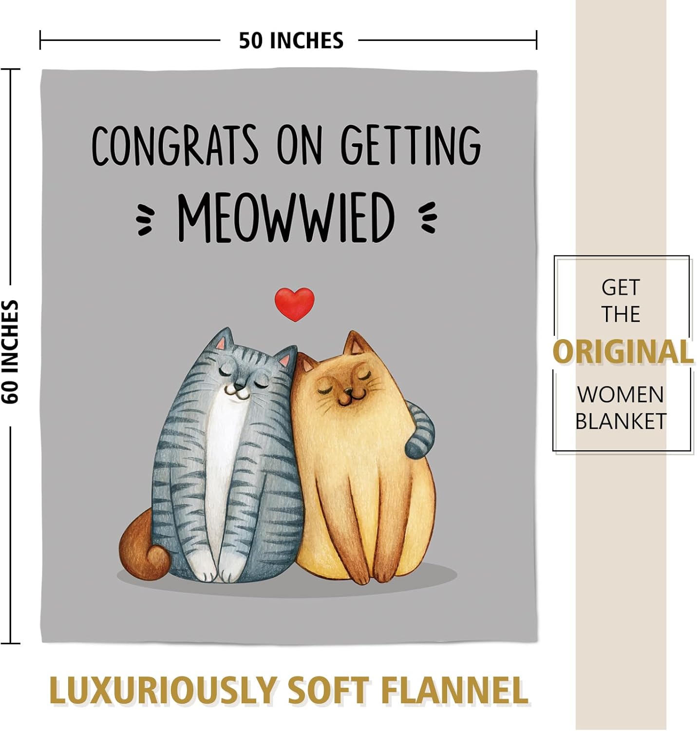 - 【Thoughtful Wedding Gifts】- Celebrate love with a playful twist! This “Congrats on Getting Meowwied” blanket brings humor and warmth to any newlywed couple. It’s a cozy reminder that marriage can be full of love, laughter, and purrs. The love blanket would be impressive wedding gifts, engagement gifts for her, couple, bride, women, friends.
