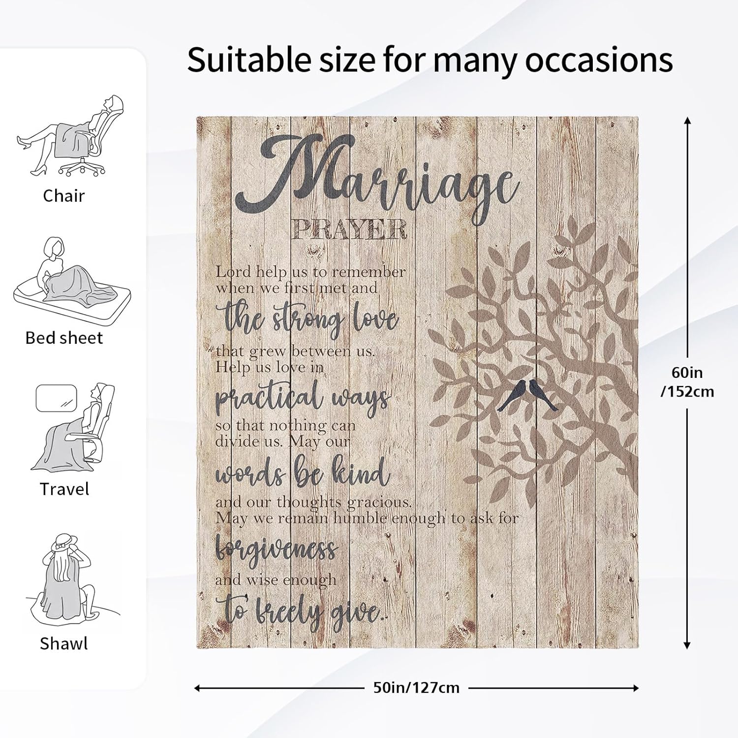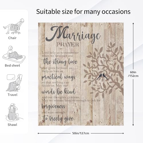 - A SOLID DECLARATION FOR A LONG MARRIAGE: Flowers will wither, greeting cards will be thrown aside, and a perfect gift should not only have a special meaning but also can be used for daily use and long-term companionship. Express your true love to your loved ones, dear husband or wife with a marriage prayer blanket. In the long years, hope he & her is always by the side. Best wishes to your love