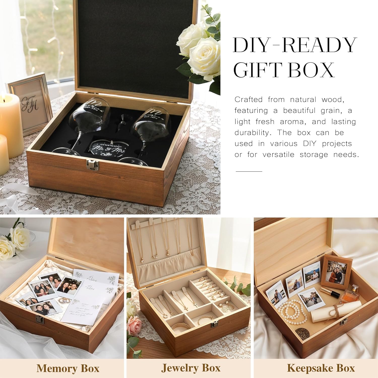 - An Elegant Wedding Gift Ideas: This personalized couple gift idea arrives ready to present, requiring no additional wrapping. Each wine glass is securely nestled within the custom wooden box, supported by thick protective pearl cotton that prevents shifting and ensures safe arrival. The engraved box itself becomes part of their home—designed to be displayed openly on a shelf, coffee table, or bar, turning beautiful storage into daily decor.