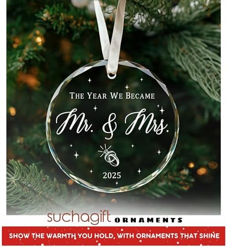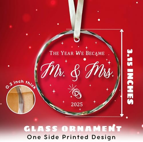 - MR AND MRS ORNAMENT: Make their holidays sparkle! This charming ornament is a delightful way to celebrate their first married and send warm wishes for a joyful season filled with cherished memories. Ideal for wedding ornament, wedding keepsake ornament, mr and mrs ornament, couple ornaments, first married ornament 2025, first married ornament, just married ornaments, 1st year married ornament …