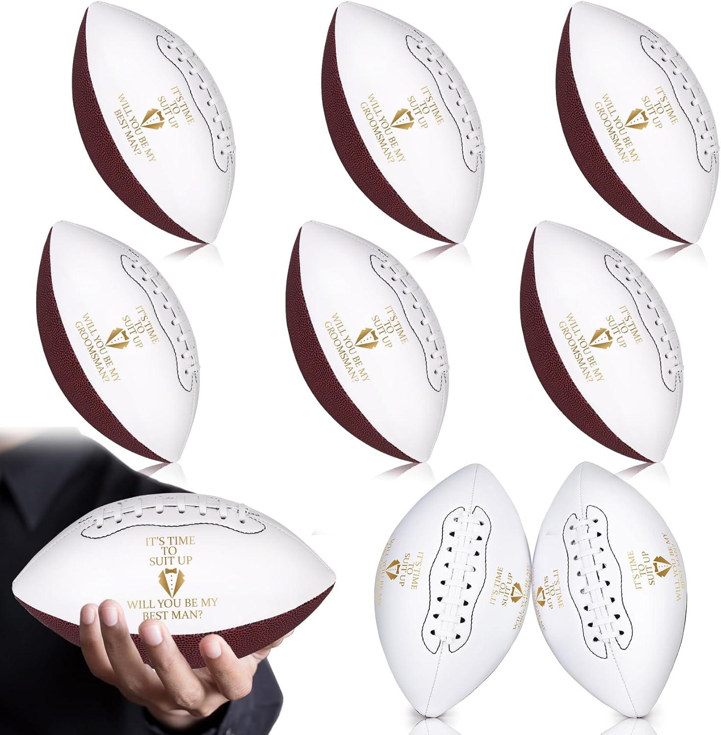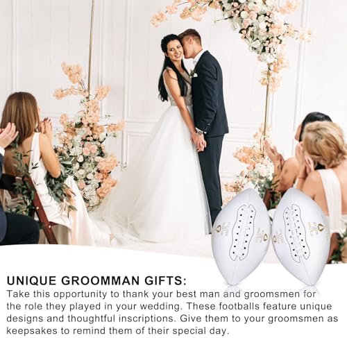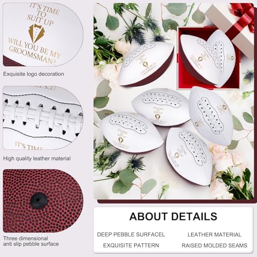 • Wedding Groomsmen Footballs: Our football set contains 1 pcs best man football and 5 pcs groomsmen footballs, making it a great choice for gift giving; enough to ensure everyone on the groomsmen team gets one, creating a sense of unity and camaraderie.