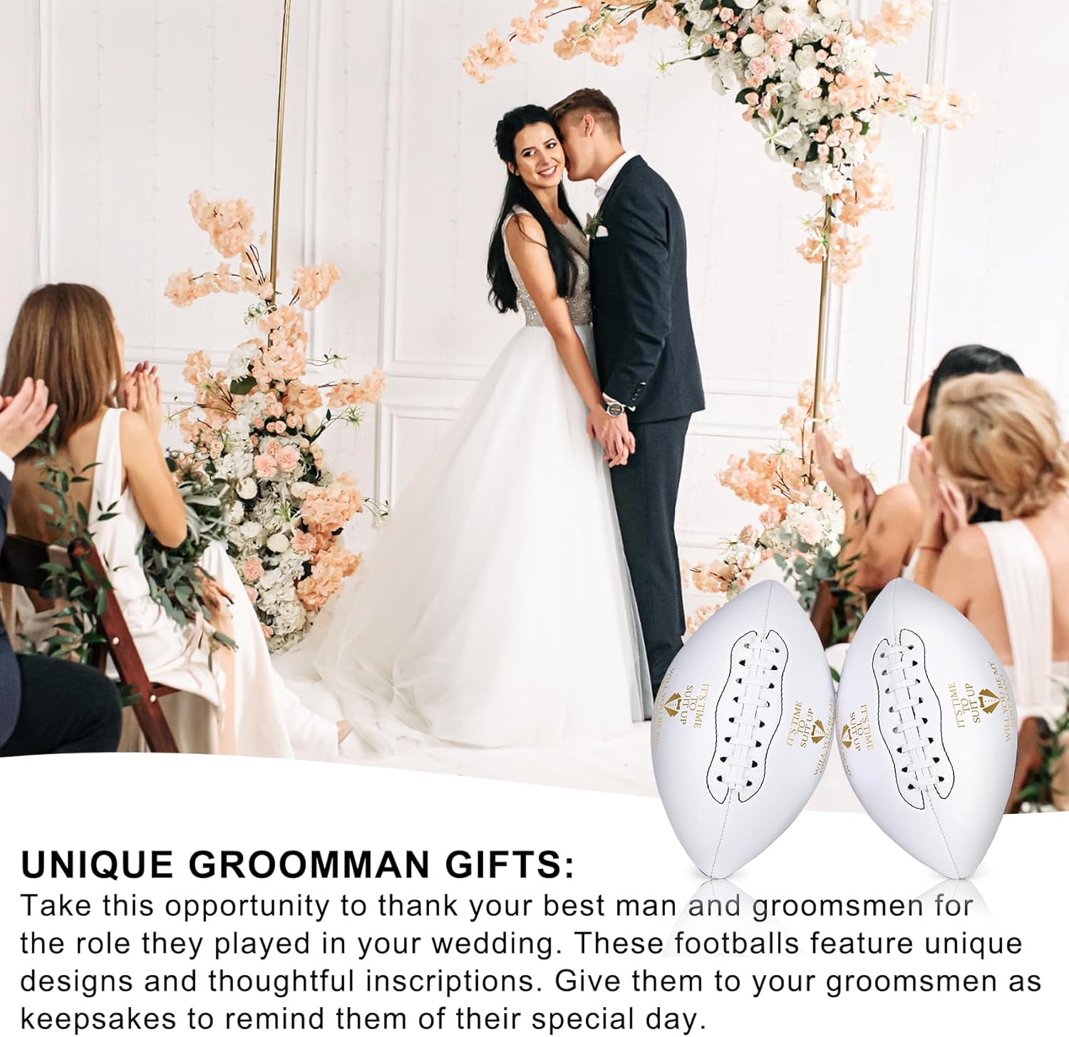 • Unique Groomsmen Gifts: Take this opportunity to make your groomsmen feel special with these unique groomsmen gifts; these footballs are printed with carefully designed messages and are given as keepsakes to remind your groomsmen of this special day, making them a great gift to thank them for their role in your wedding.