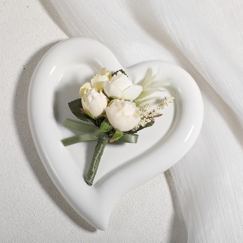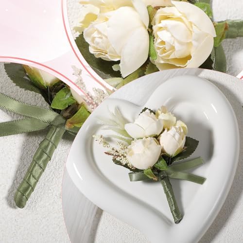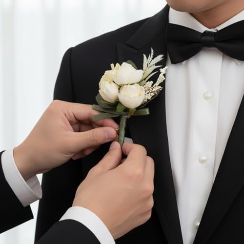Wedding White Rose Boutonniere Mens Flower Buttonholes Artificial Rose Flowers Groom Groomsmans Suit Decoration Boho Prom Boutonniere for Wedding Anniversary Formal Dinner Party