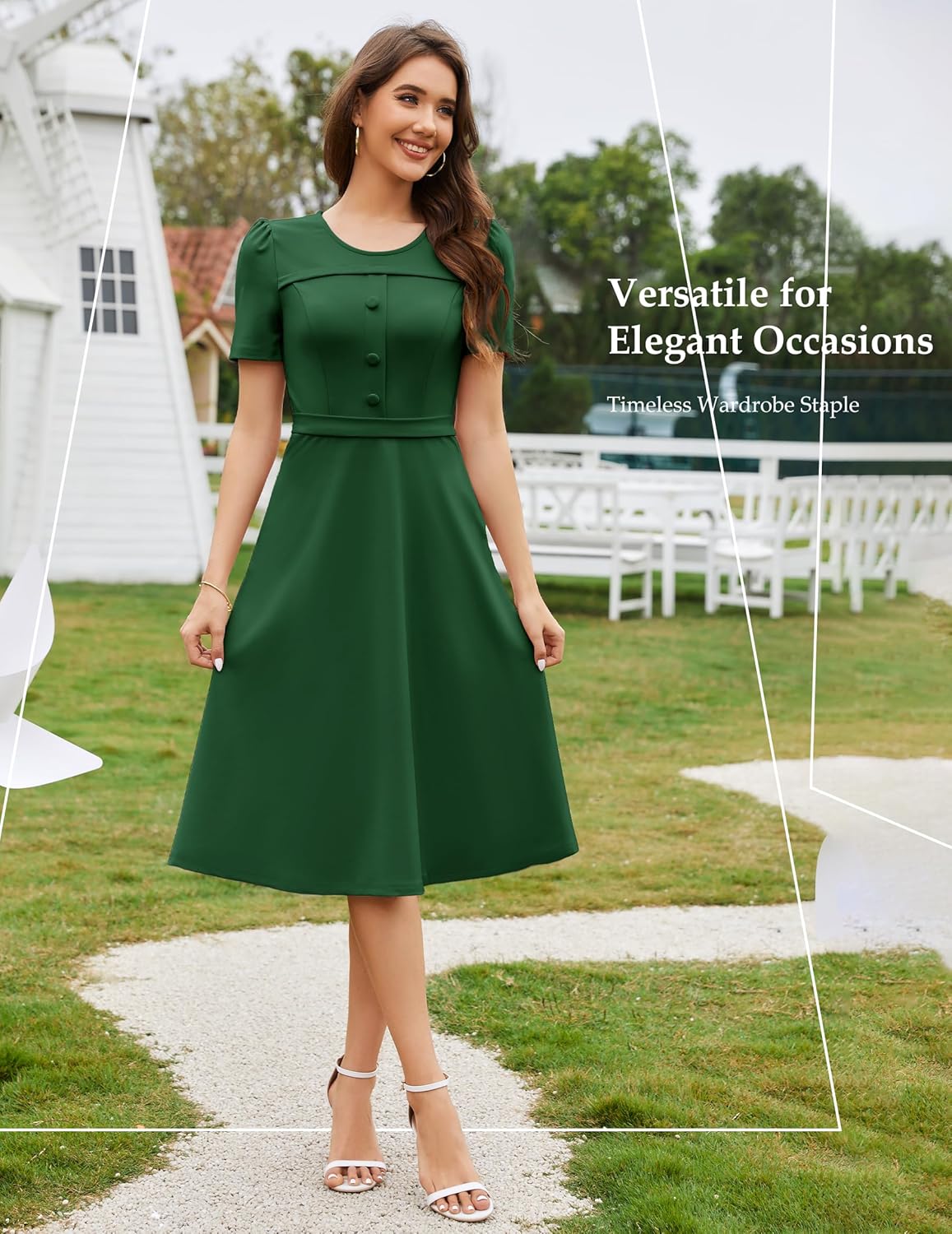 • Capped sleeve design: The capped sleeve design makes the dress look more elegant.