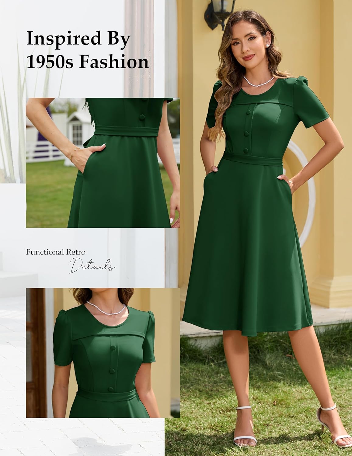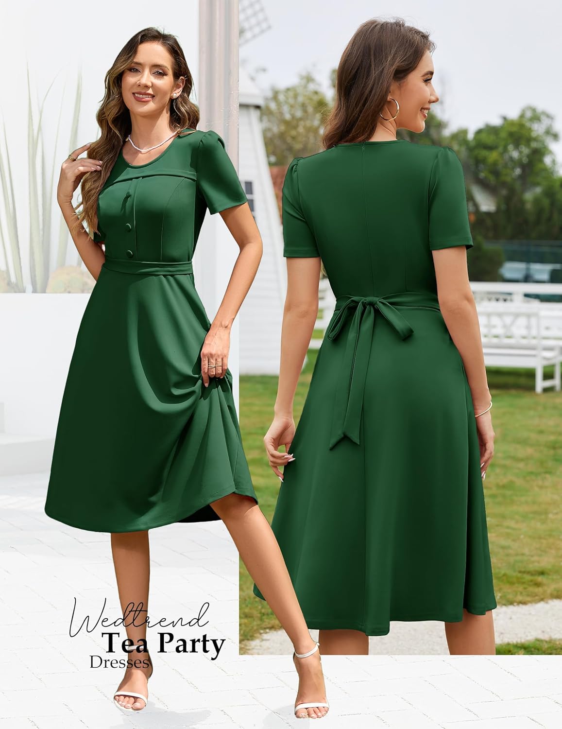 Wedtrend 1950s Vintage Dresses for Women Church Dress with Pockets Tea Party Dresses A Line Wedding Guest Dress