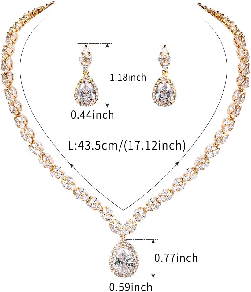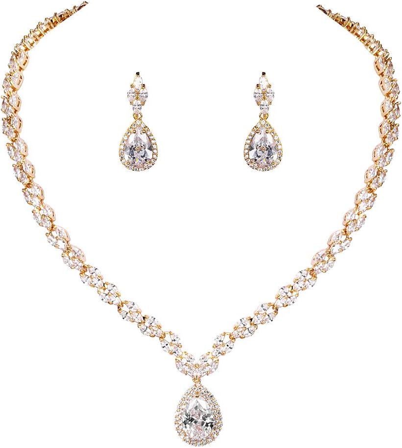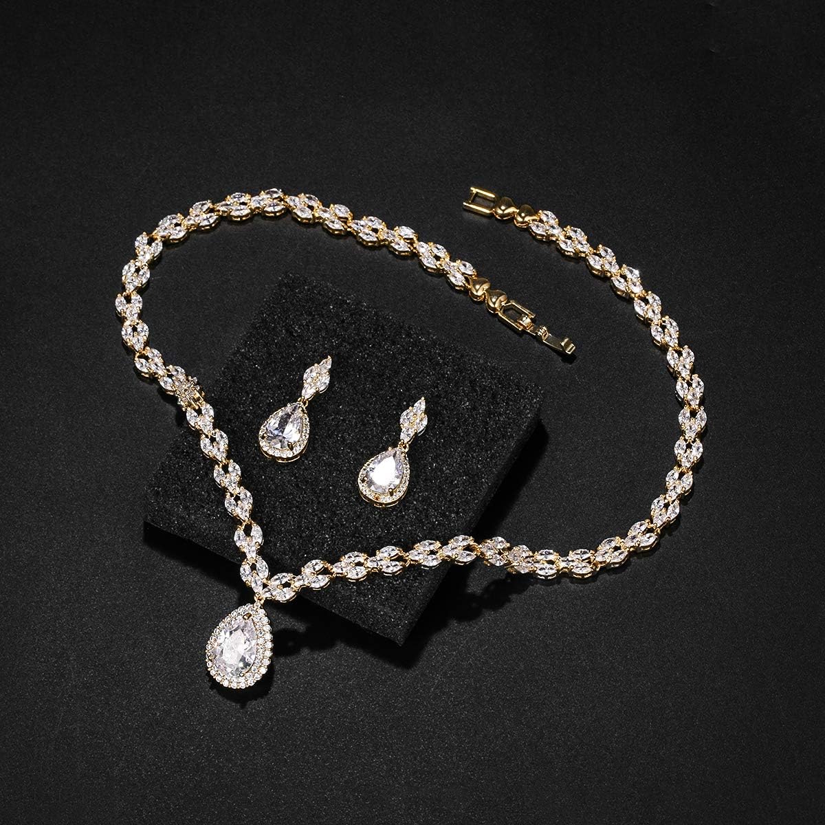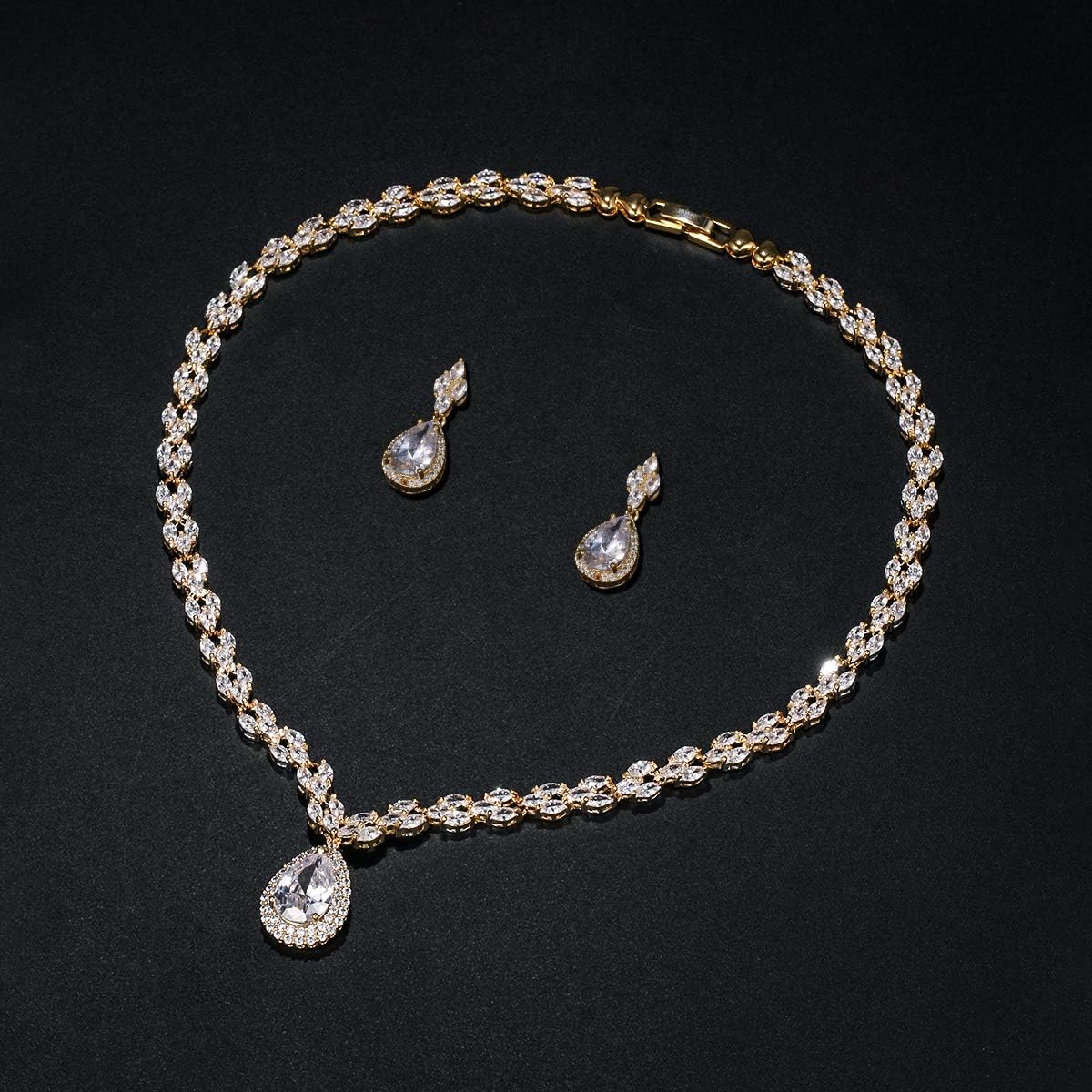 Women Cubic Zirconia CZ Marquise Teardrop Bridal Tennis Necklace and Drop Earring Set