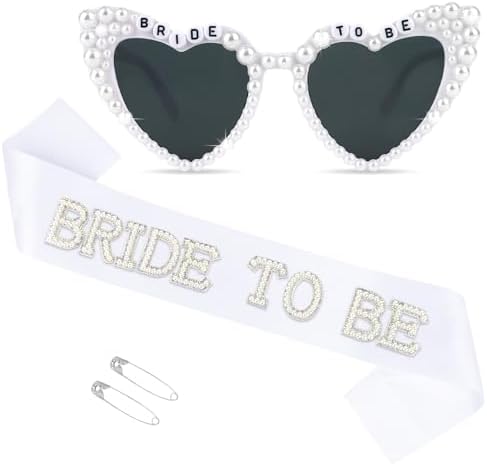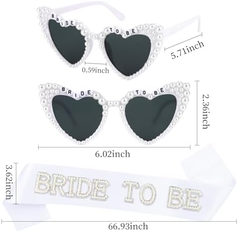 • Fit for All: Satin sash (66.93″ long, 3.62″ wide) Includes 2 pins to secure the sash, drapes flawlessly on any bod, while the white heart-shaped sunglasses suit all face shapes