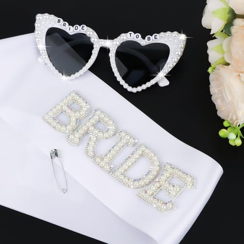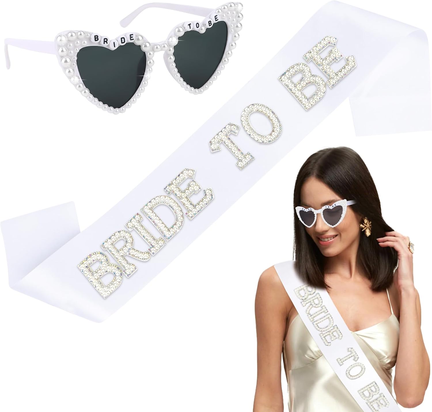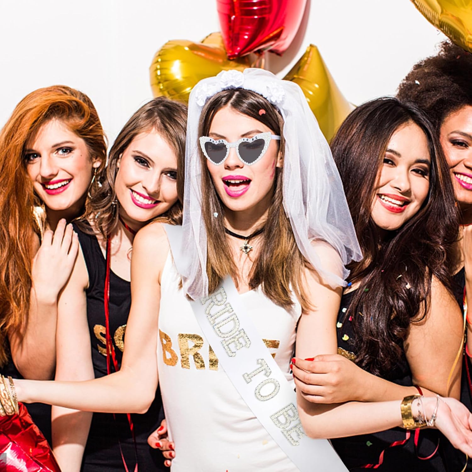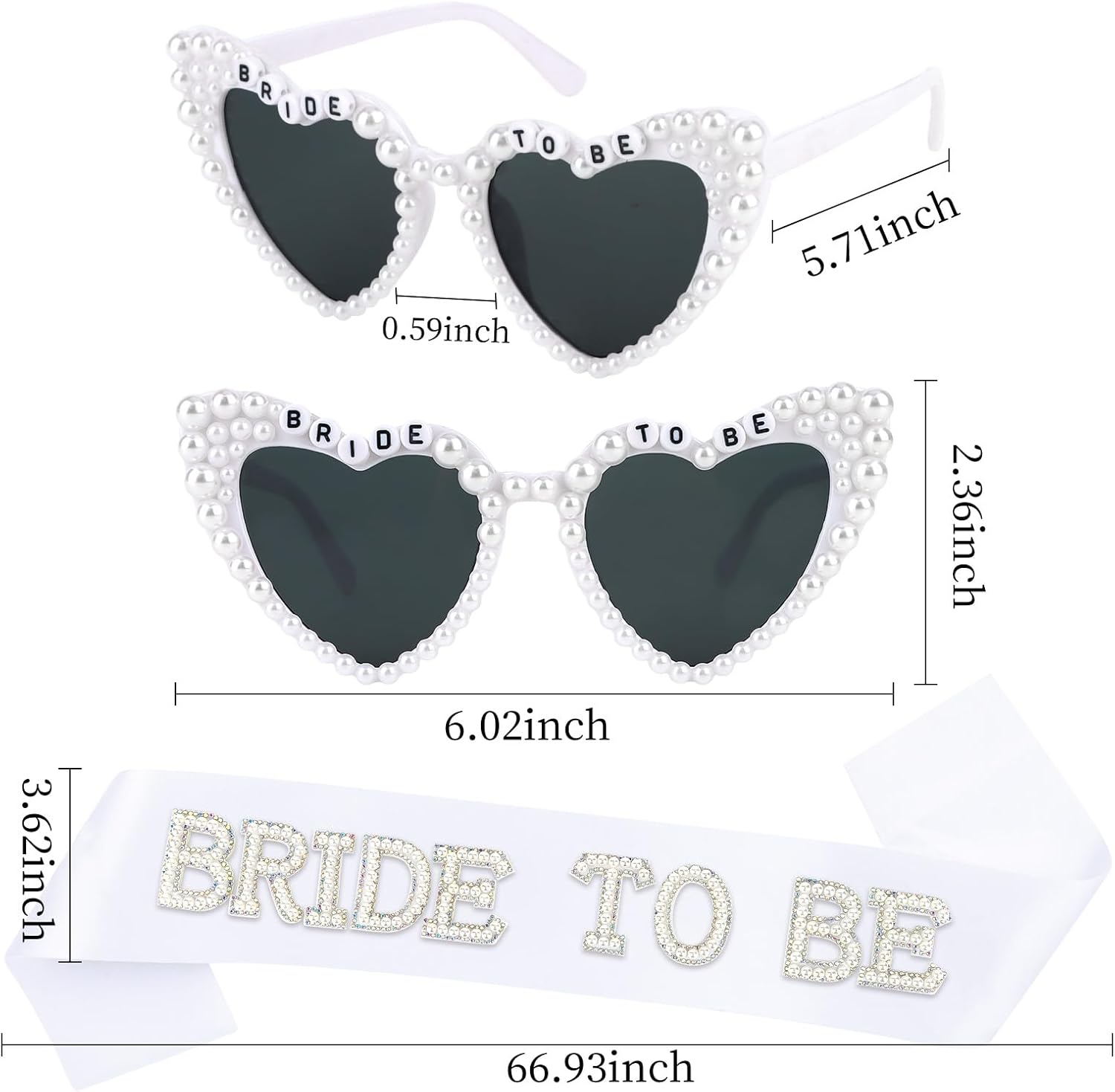 White Bride Sash & Heart Sunglasses Set Bachelorette Party Decorations Bridal Shower Engagement Party Decorations