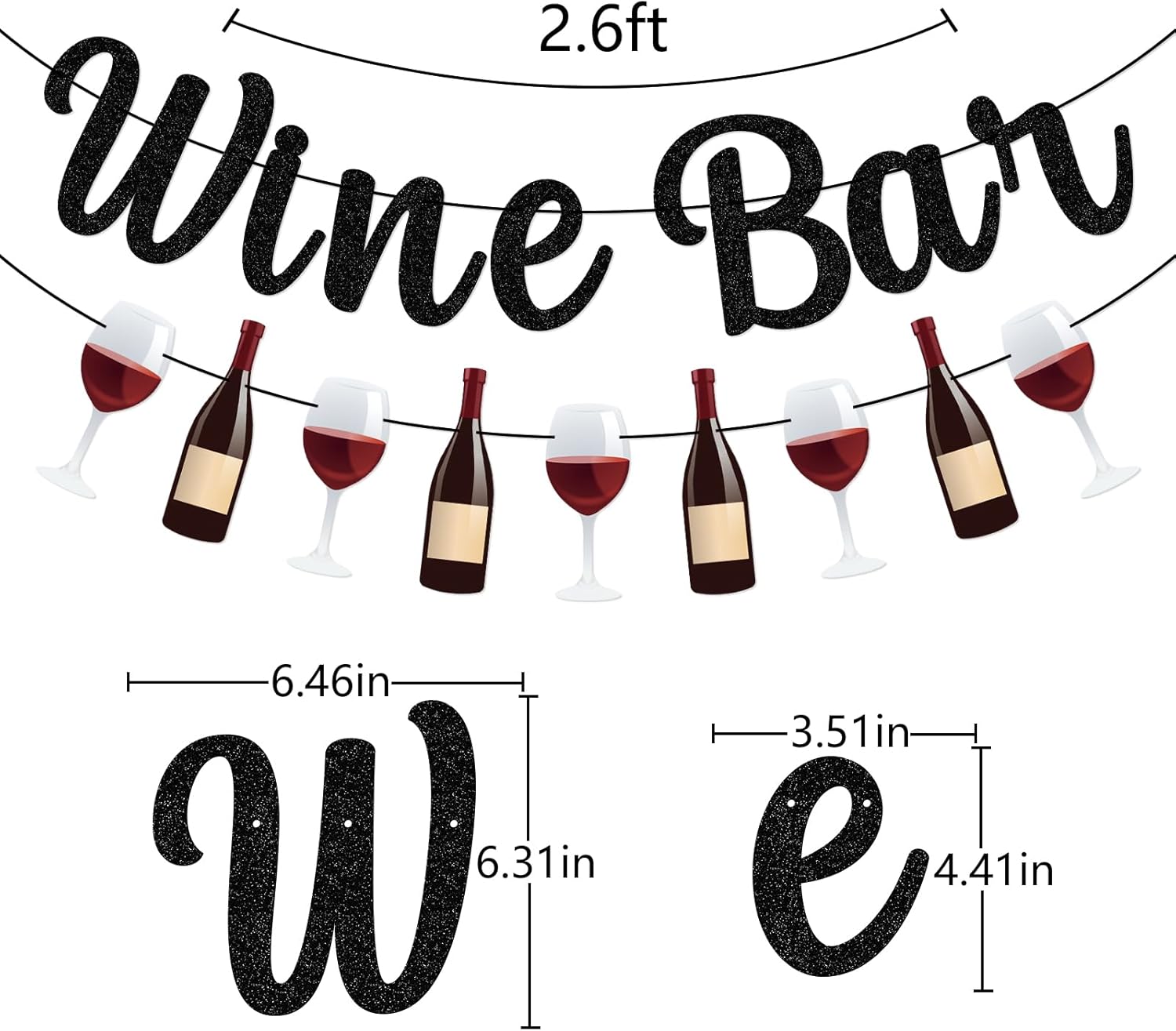 • Perfect Size: Each glitter letter measures 3.6”–4.1” wide x 6.11” tall, creating a bold statement. Fits beautifully above drink stations, dessert tables, or photo booths, ensuring your wine bar decorations steal the spotlight!