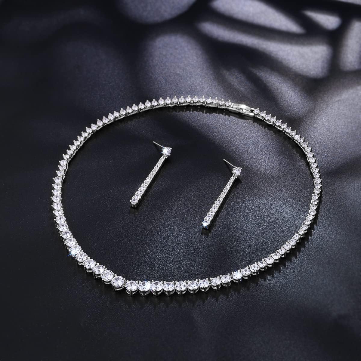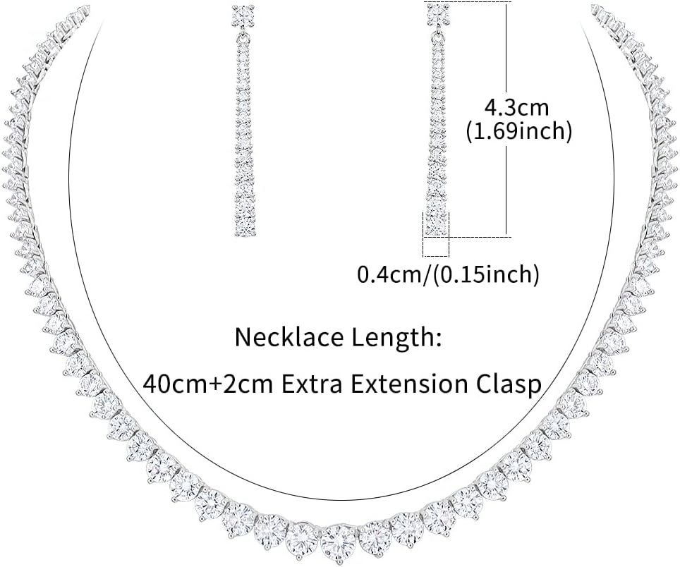 - Necklace length:15.74inch,earrings size:1.69 inch*0.15 inch as showed in the second picture,we aslo add a 0.78inch extender,be sure to measure your size before buying,maybe it is small for you!!!