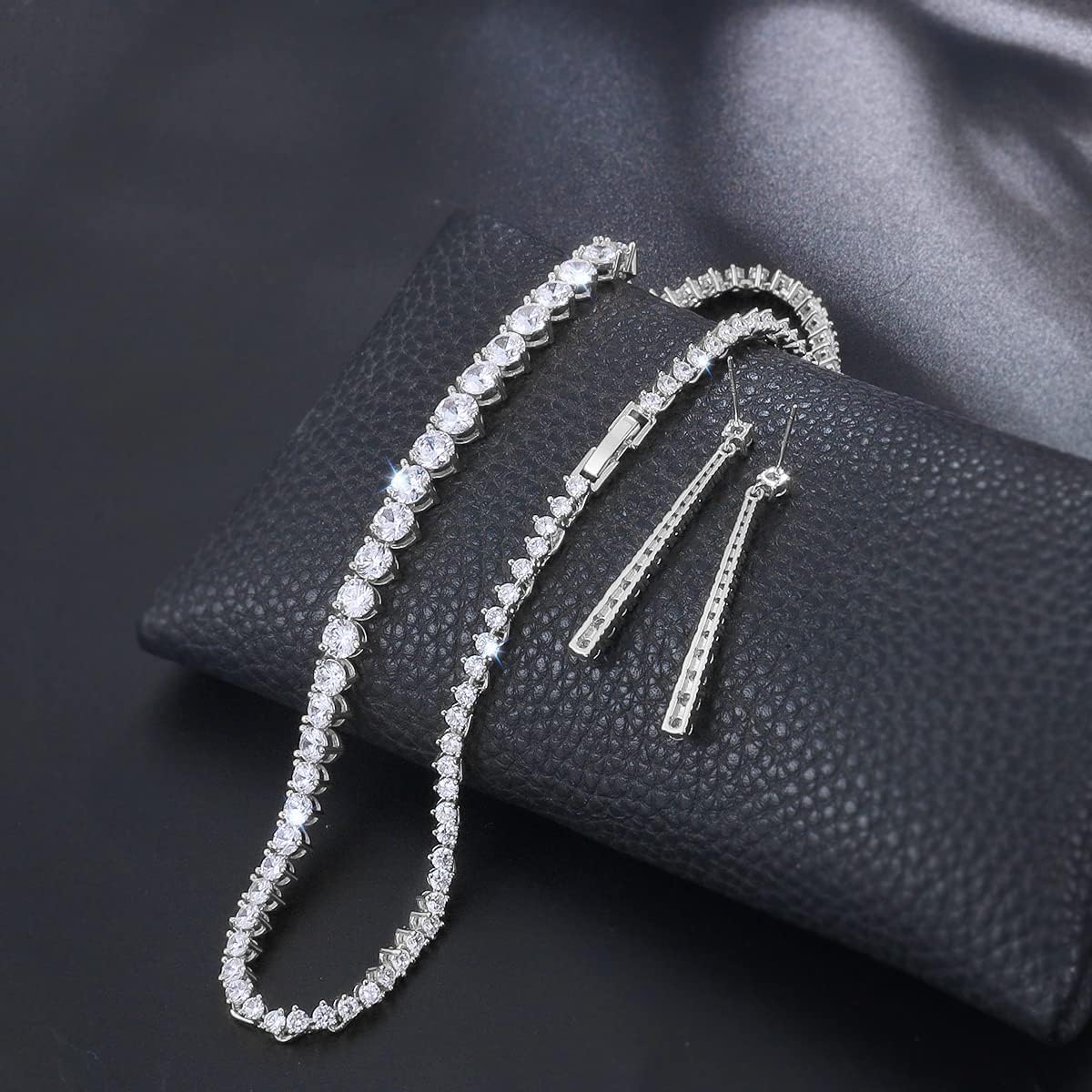 - Material:white gold plated copper + clear cubic zirconias.And the metal surface is smooth,sparkly and beautiful