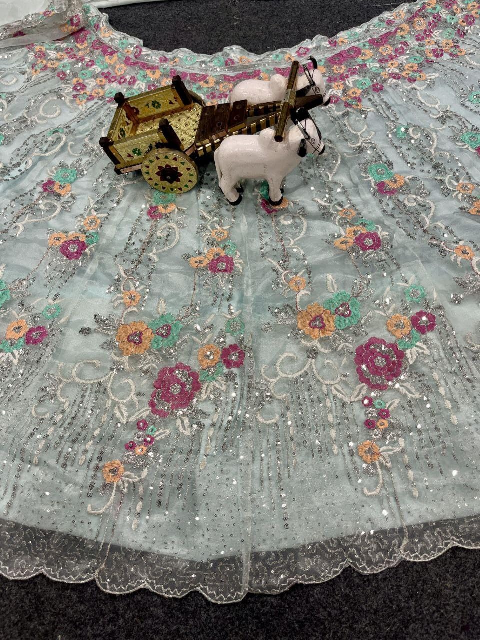 - Material: Lehenga Febric – Premium Quality heavy organza Silk || |Blouse Fabric – Premium Quality heavy organza Silk || Dupatta Fabric – Premium Quality heavy organza Silk || Inner:- Crape Silk || WORK:- Embroidery Sequins Work With Cancan & Canvas Patta*
