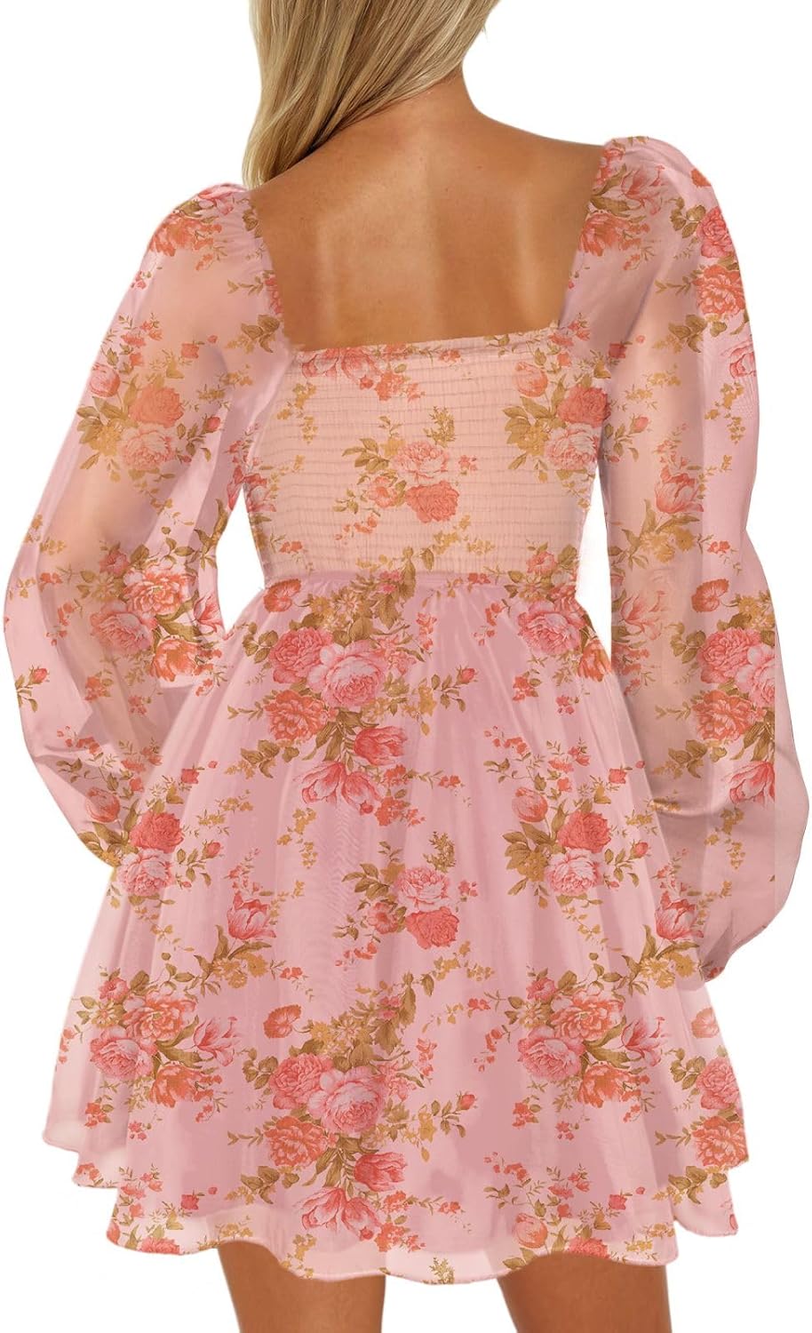 - Features: Square neck, smocked back, backless dress, puff long sleeve, elastic high waist, A line shape, knee length dress, floral print dress, mini dress, short dress, swing and flowy chiffon dress, make you look elegant and cute.