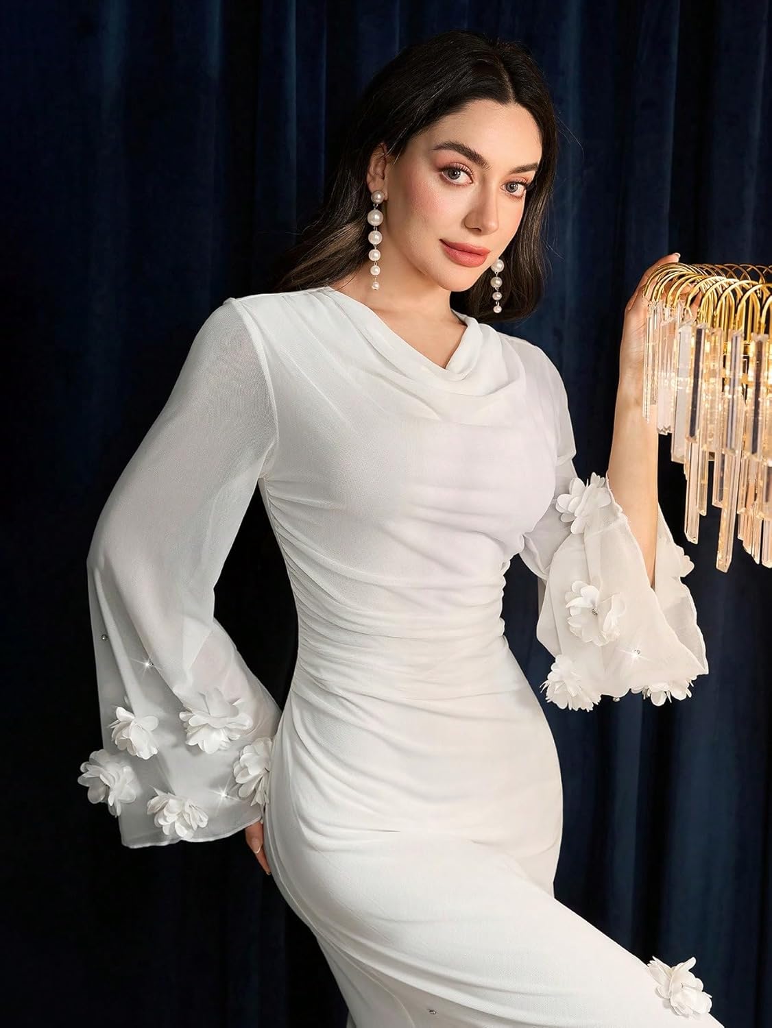 - Evening gowns for women formal, featuring a v-neck, floral embroidery, and a sleek bodycon fit, ideal for weddings, guest events, or cocktail parties in 2029.