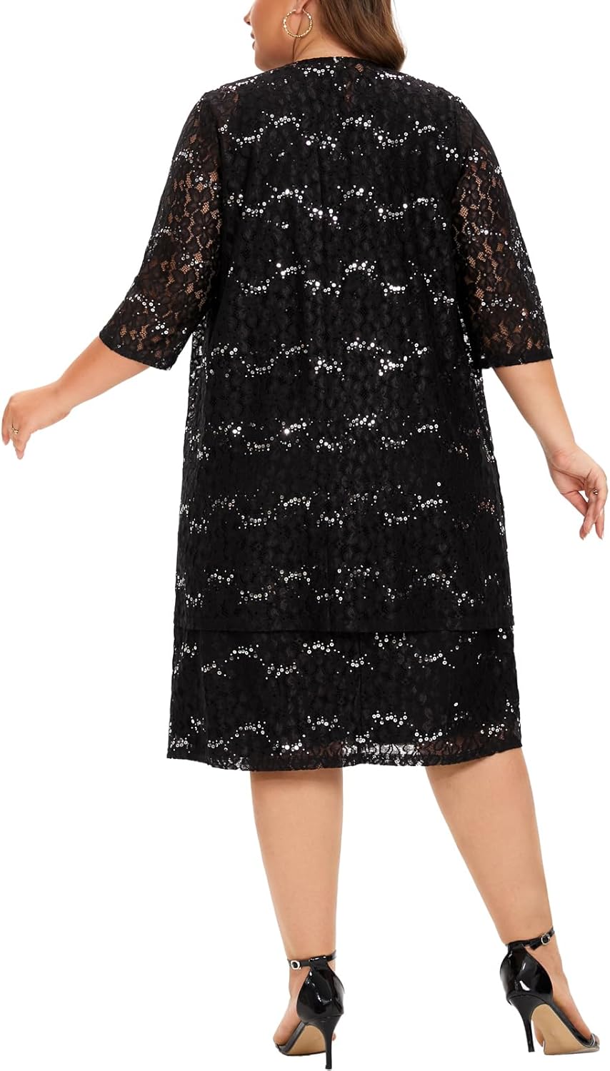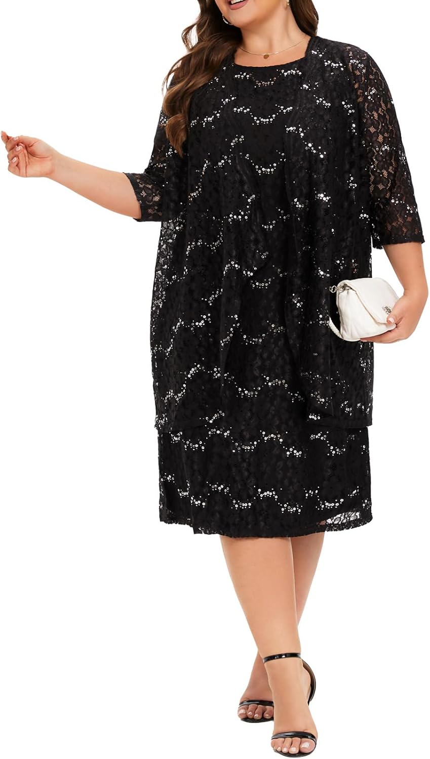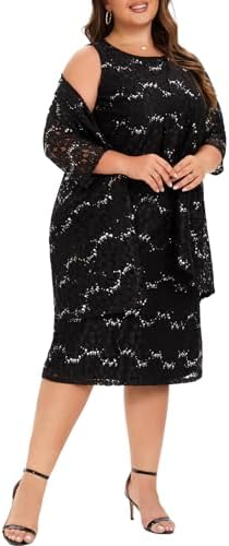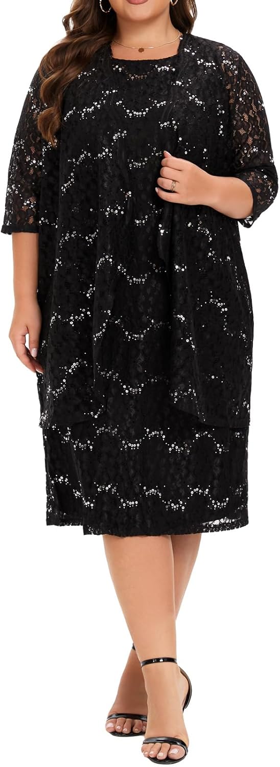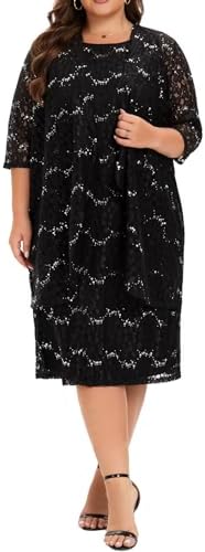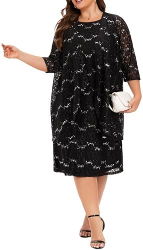 - INCLUDED – This plus size lace dresses for wedding guest includes a sequin lace dress and a sequin lace jacket; The dress comes with anti-static lining, which is exquisitely crafted and feels soft and comfortable, providing ultimate comfort all day long.