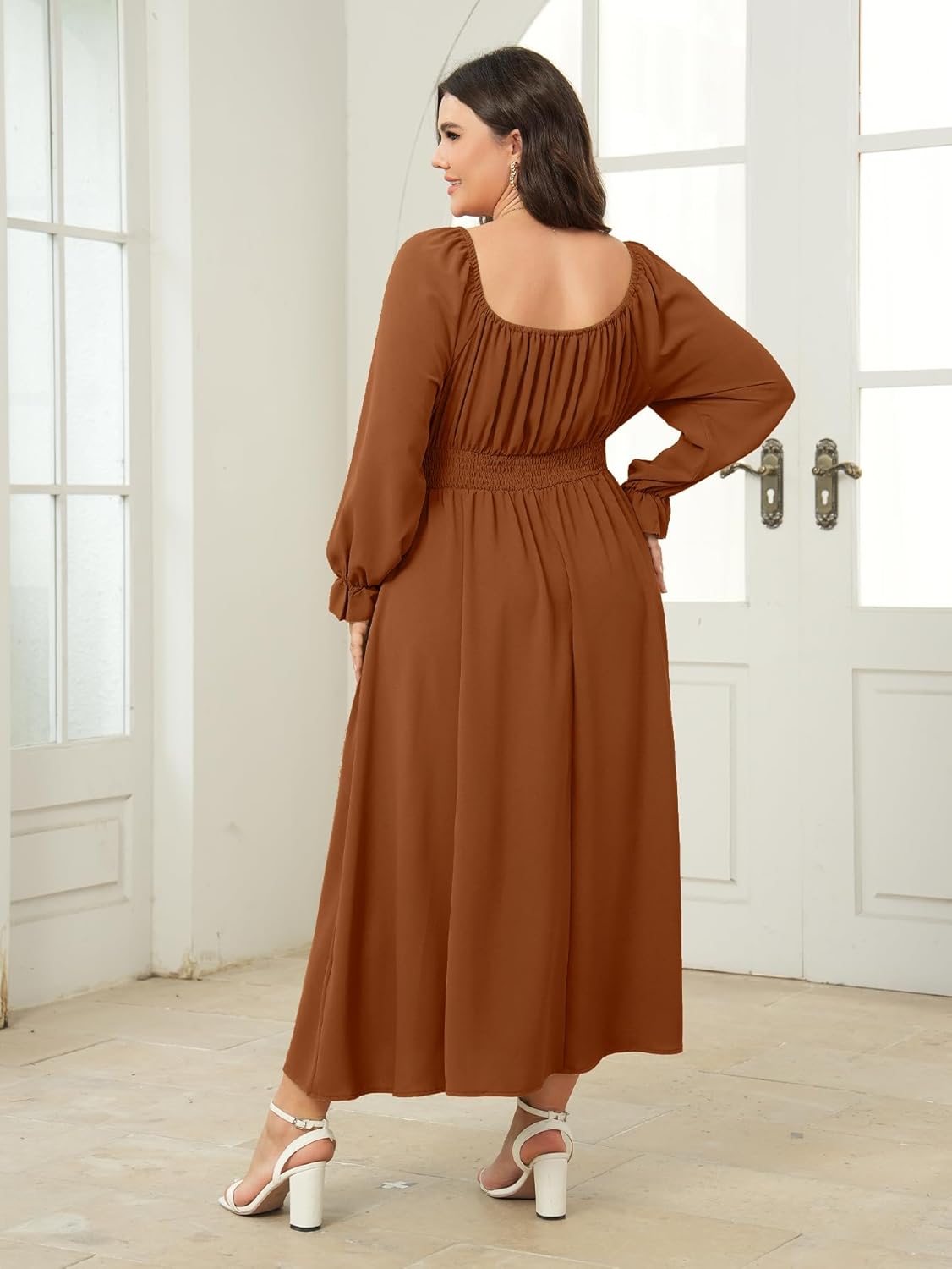 Women’s Plus Size Maxi Dress Square Neck Long Sleeve A-Line Elegant Maxi Dress