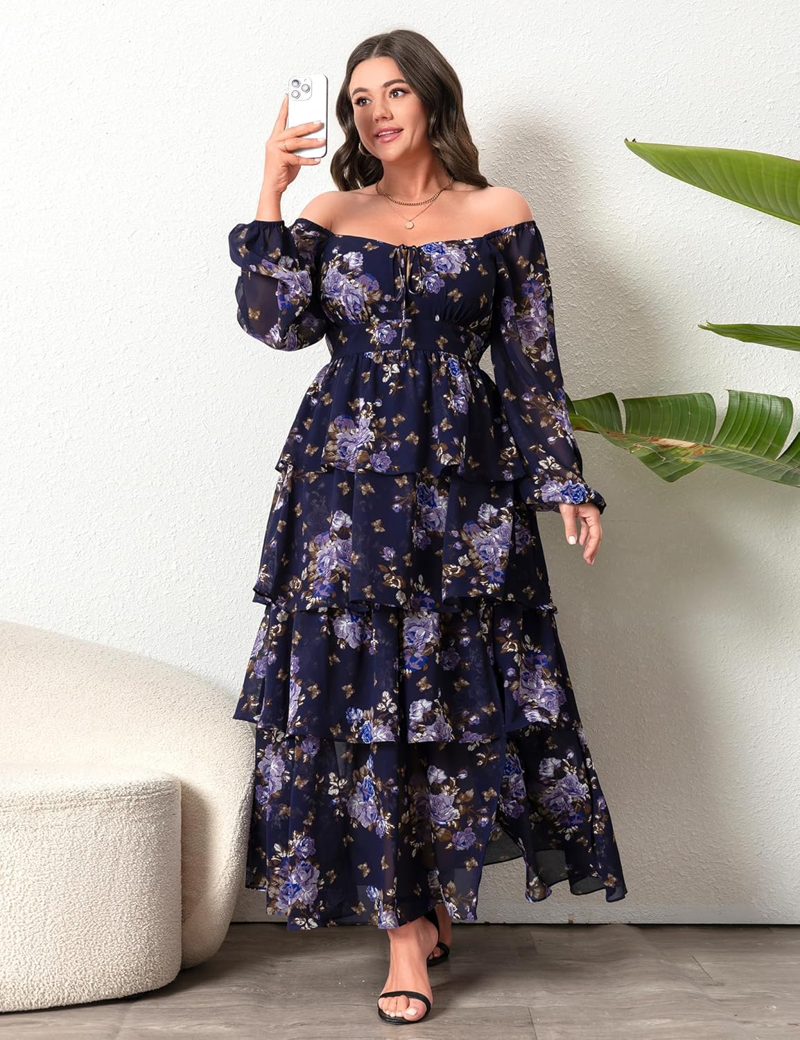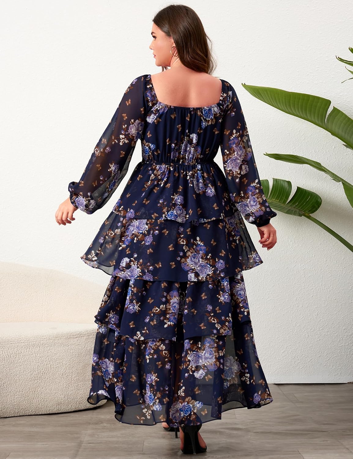 - Chic Design: This high-waisted maxi dress, with its unique long-sleeve printed design, brings you an unparalleled sense of elegance. The layered ruffle details add a touch of playfulness, while the side slit and sweetheart neckline design adds a touch of sexy charm to this adorable dress. The high-waist design cleverly elongates the legs, creating a perfect body proportion. Whether you’re tall or petite, this long dress will make you look more slender and confident