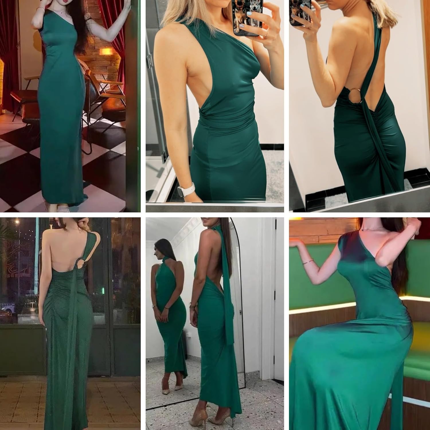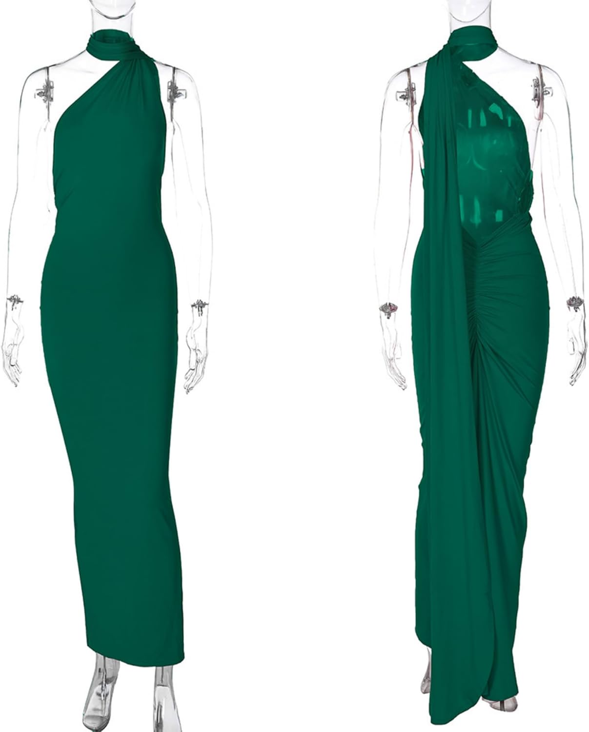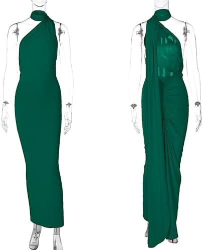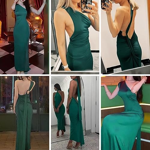 - FEATURES: This sexy maxi dress features one shoulder, sleeveless, backless, floor length, ruched back and metal O ring. Soft and stretchy fabric fits your body perfectly and makes you look sexier than ever.