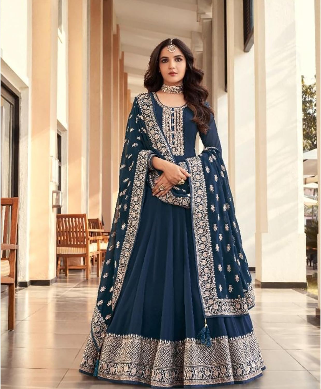 • Description :- Top :- Premium Silk, Georgette || Bottom :- Santoon || Dupatta :- Premium Silk, Georgette with Heavy Embroidery Work || Size :- Max up to 46″ Inches || Work :- Heavy Embroidery Work || Style :- Anarkali Gown Suits || Type :- Ready To Wear ||