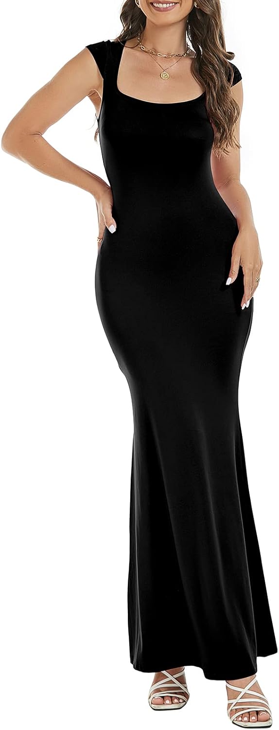 Women’s Maxi Bodycon Dress Sexy Cap Sleeve Trendy Tight Slip Long Dresses 2024