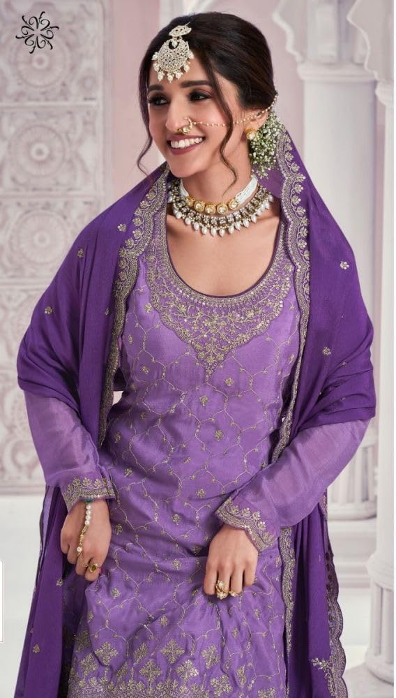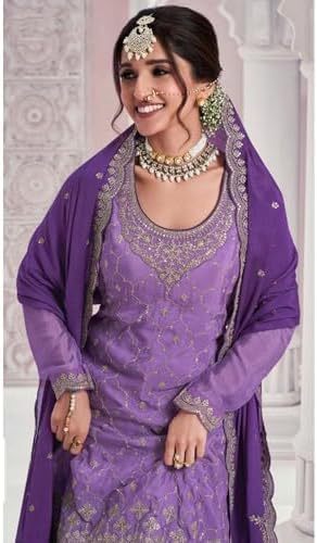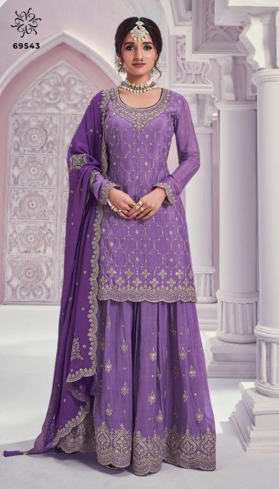 - Description : Top: – Faux Georgette, Chinon with Embroidery work + Stone || Sleeves: – Faux Georgette with Emb.work + Stone || Inner : Santoon || Sharara : – Georgette with Emb.work || Sarara Inner: – Santoon || Dupatta: – Nazmeen Chiffon || Top Length : Max up to 46″ Inches || Size :- Max up to 52″ Inches || Style : Salwar Kameez Plazzo Suits || Type : Ready to Wear ||