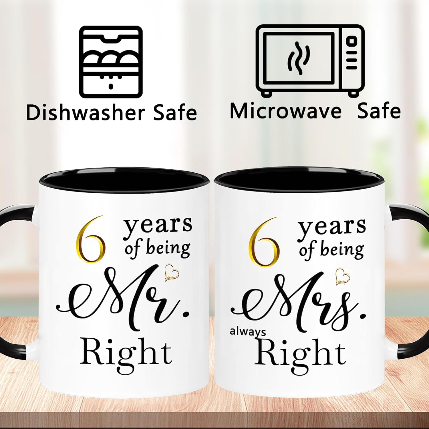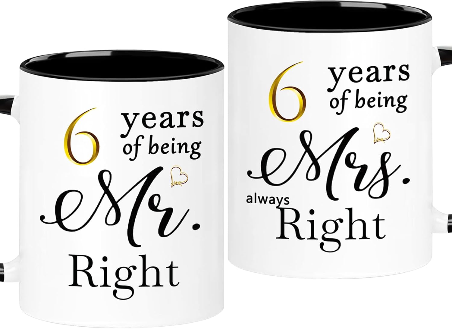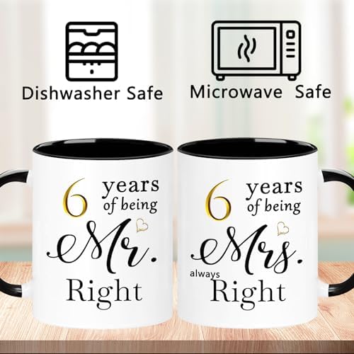 - 【6 Year Anniversary Gifts】: “6 Years of Being Mr Right/Mrs Always Right”, 6yr anniversary is an important milestone, cheers for 6th wedding anniversary happy and fulfilling love. Unique design, double sided printing, no scratches or fading.