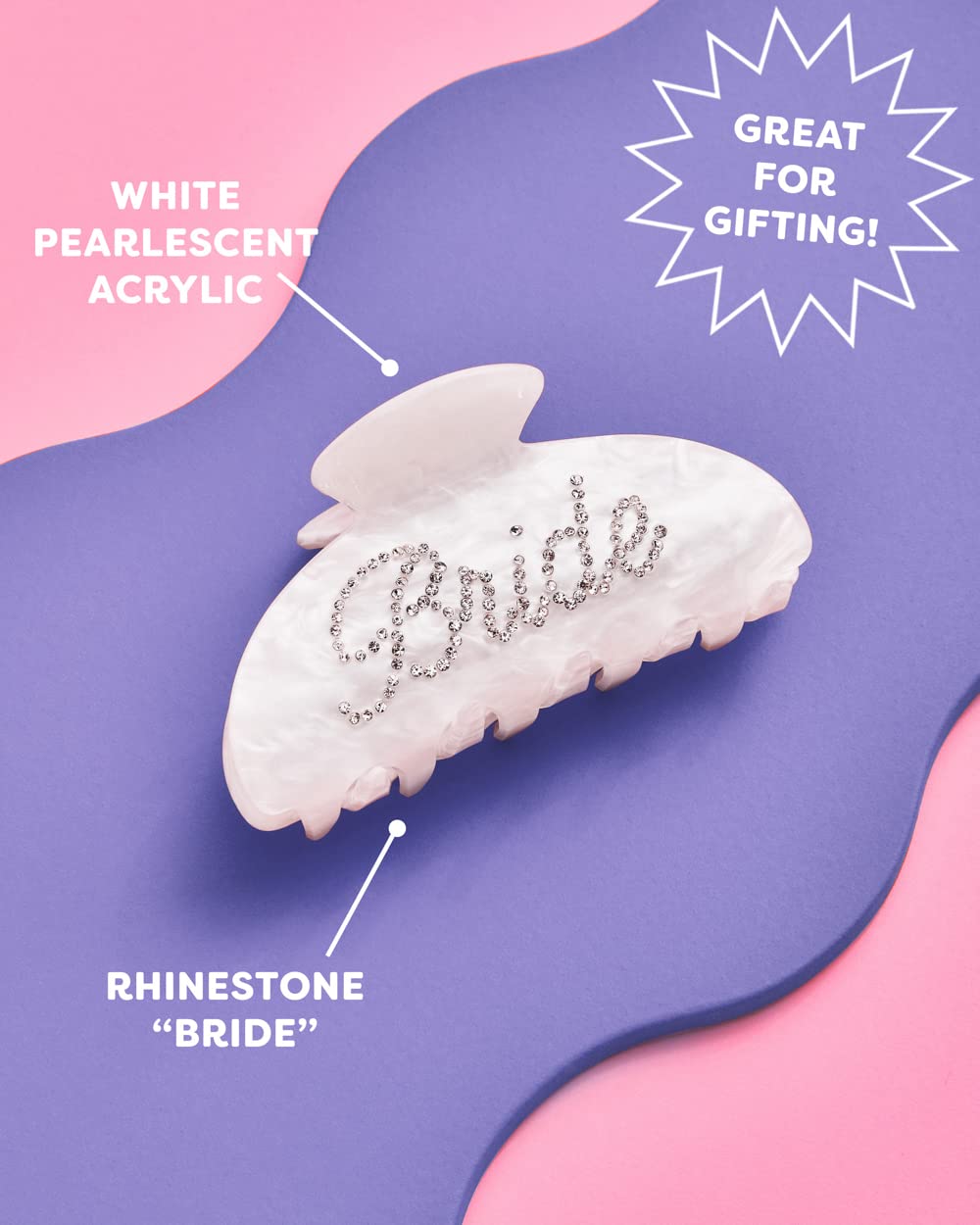 - Bride Logo: want everyone to know you’re the bride, but don’t want to wear a sash? Enter this hair clip! The bride rhinestone logo and the pearl color are the perfect way to let everyone know you’re the bride without telling you’re the bride 😉
