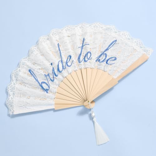 xo, Fetti White Lace Bride to Be Folding Fan | Bridal Something Blue, Wedding Accessory, Bridesmaid Gift, Embroidered Bachelorette Outfit