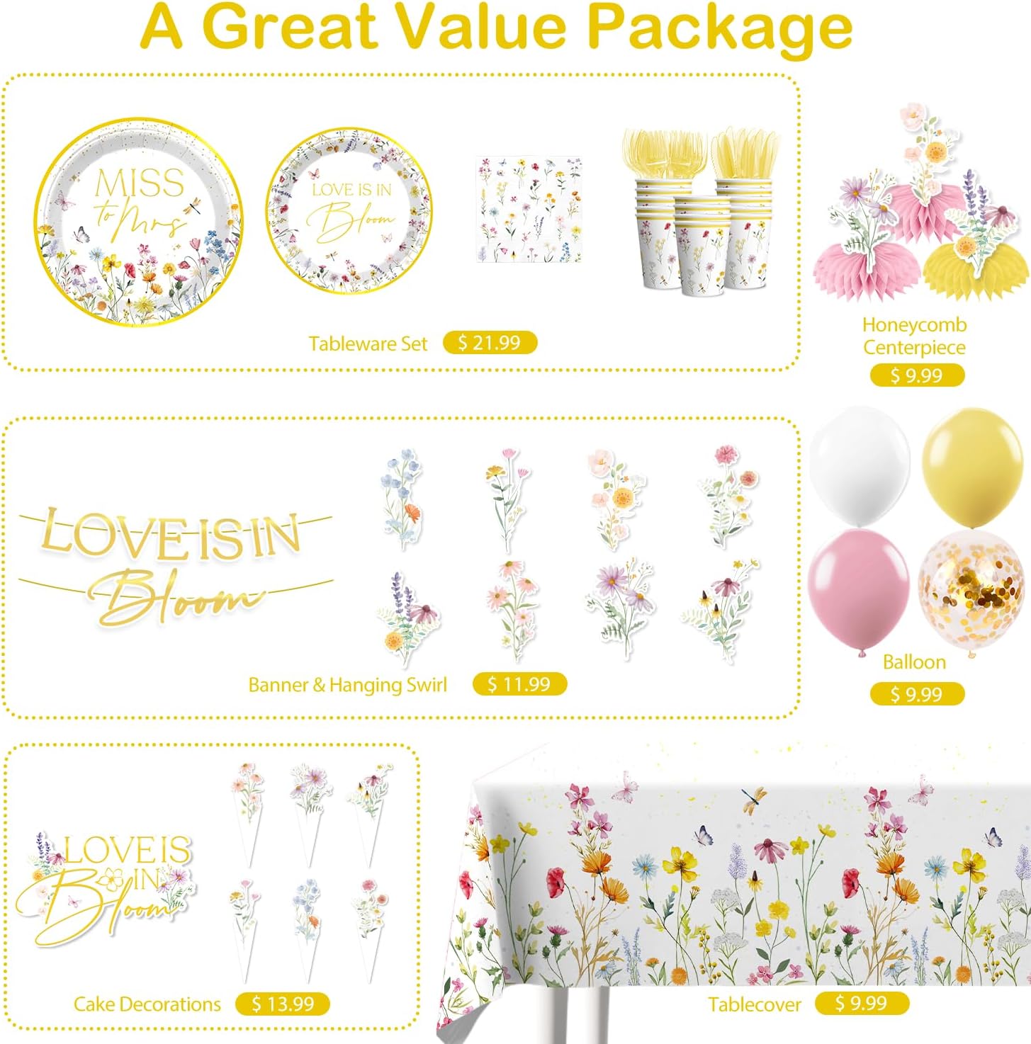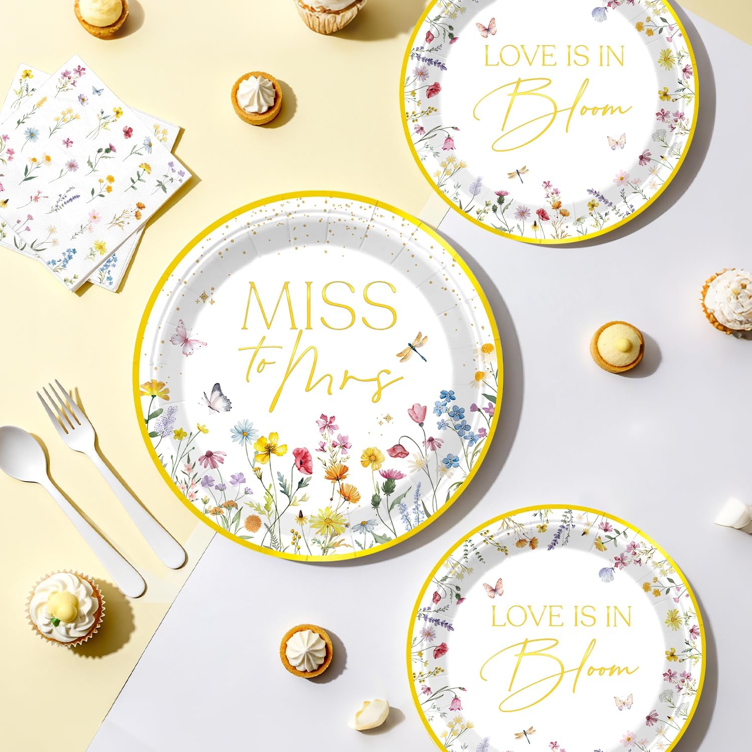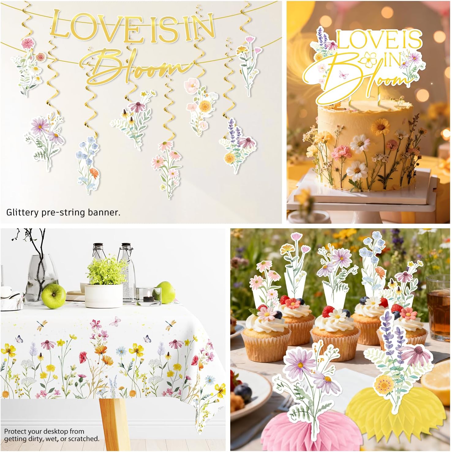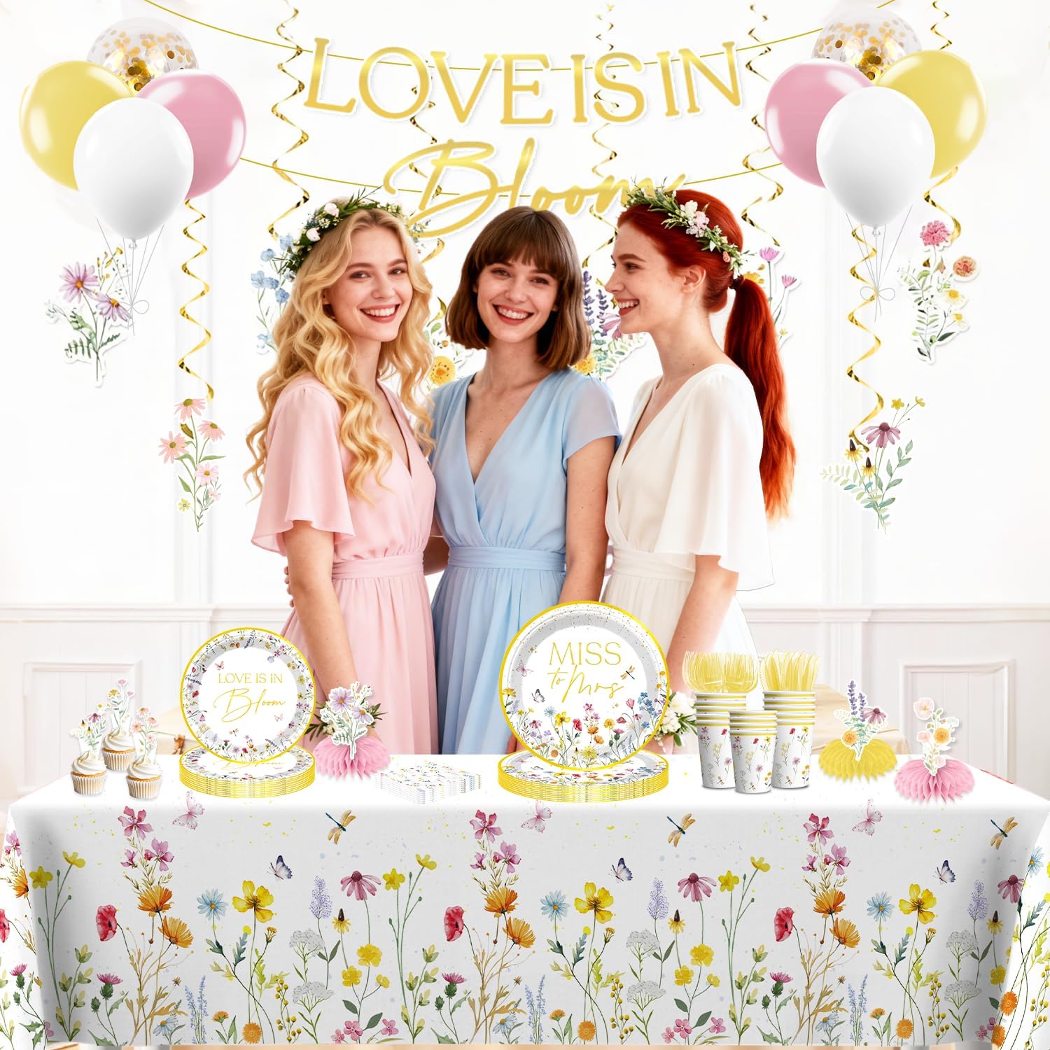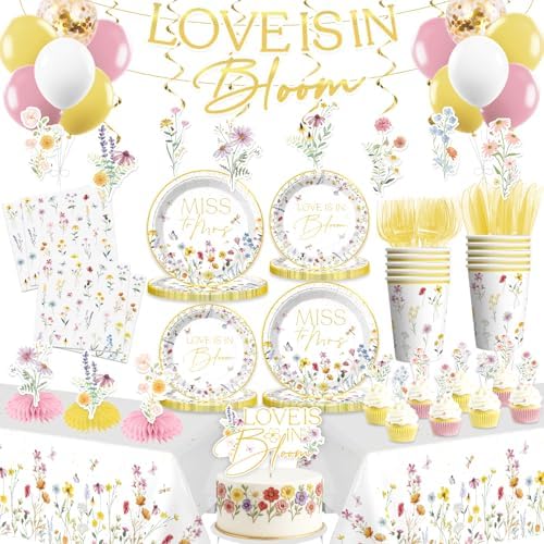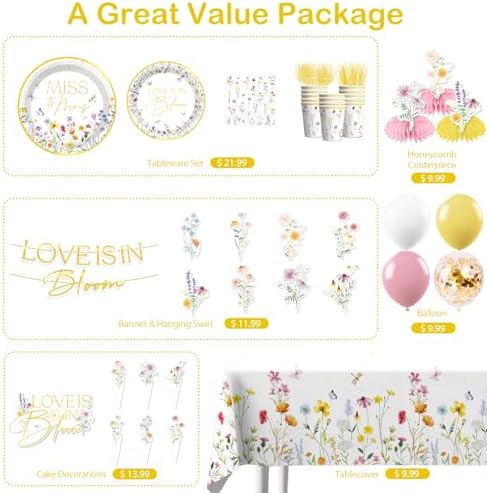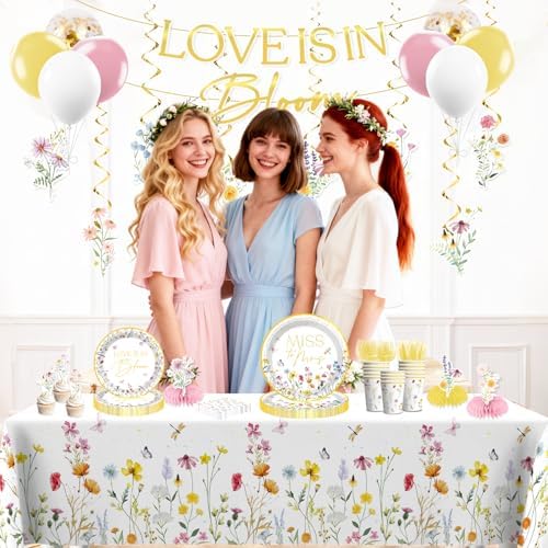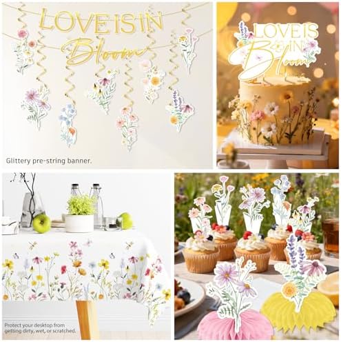 - 【Unique Design:】This set features hand-painted wildflowers in soft pink, yellow, blue, and purple hues, paired with a gold-stamped letter pre-threaded love is in bloom banner, easily creating a romantic and unified space. the entire wild flower bridal shower decorations are quick to set up, easy to clean, low-cost, and aesthetically pleasing, making it incredibly convenient