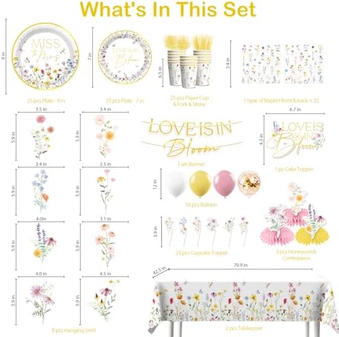 - 【Package Included:】The love is in bloom bridal shower decorations include 1 pre‑threaded love is in bloom banner, 8 hanging swirls, 25pcs 7-inch love is in bloom bridal shower plates, 25pcs 9-inch plates, 2 tablecloths, 16 balloons, 1 cake topper, 24 cupcake toppers, 3 honeycomb centerpieces, 25 paper cups, 25 forks, 25 knifes, 25 napkins, these love in bloom bridal shower decorations can meet most of your party needs