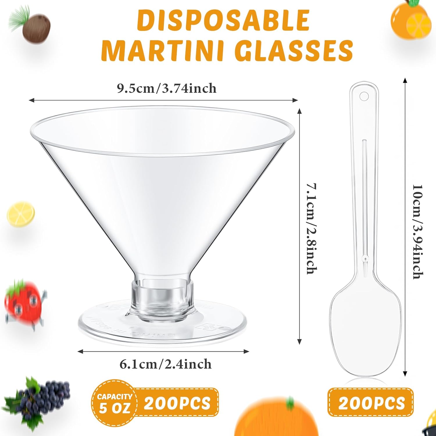 • 200 Cups 200 Spoons Set: we will provide you with a total of 200 pieces of disposable martini glasses and 200 pieces of mini spoons for desserts; Sufficient quantity and practical collocation can easily meet your needs for party use