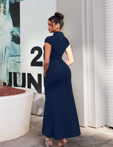 • Features:women’s high split ruched maxi dress, short sleeve, slim fit, a lace-up waist finishes the dress to allow you to cinch in to your preference.twisting your front waist design can show off your attractive hips, side high split fully shows the proportion of the slender legs,while the air flow when walking brings a cool feeling to the legs,trendy and unique design make you more attractive.