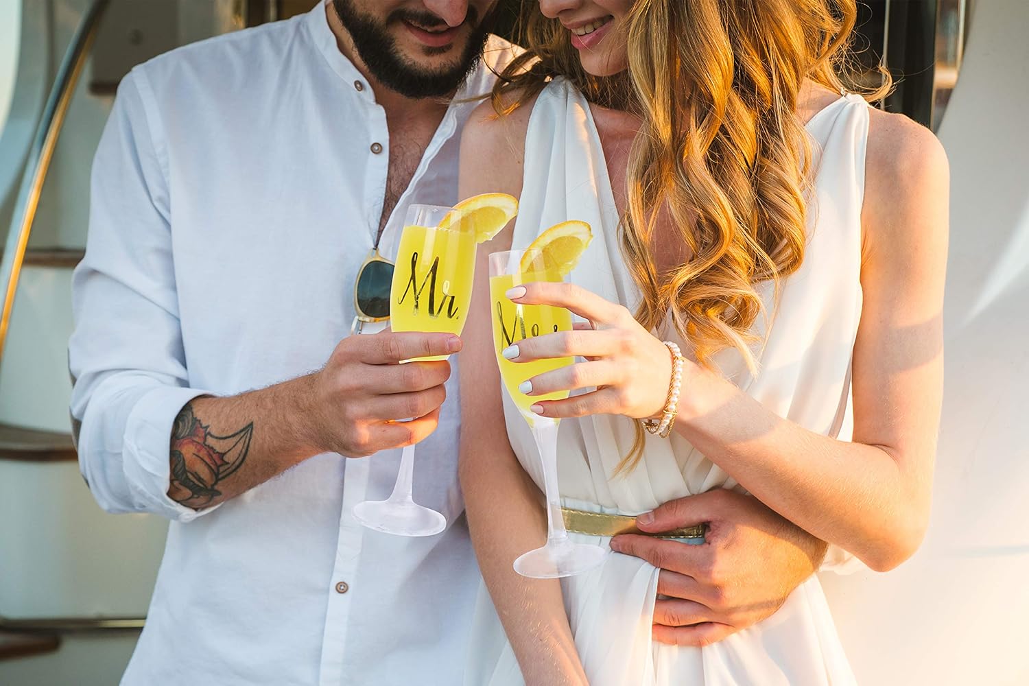 • Durable and Designed to Last: Each set of mr mrs champagne flutes is crafted with the highest quality materials, ensuring that they not only look wonderful but are made to last through years of celebrations. Raise a toast to love, life, and happiness with these enduring symbols of your wedding day.