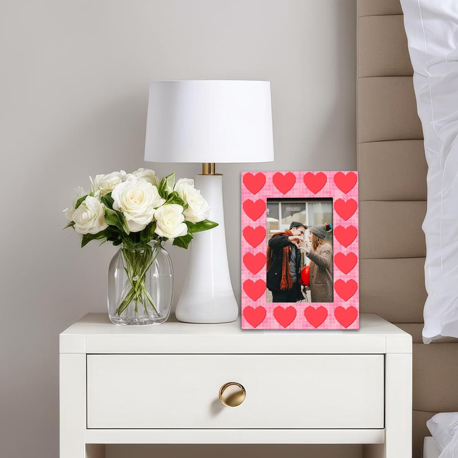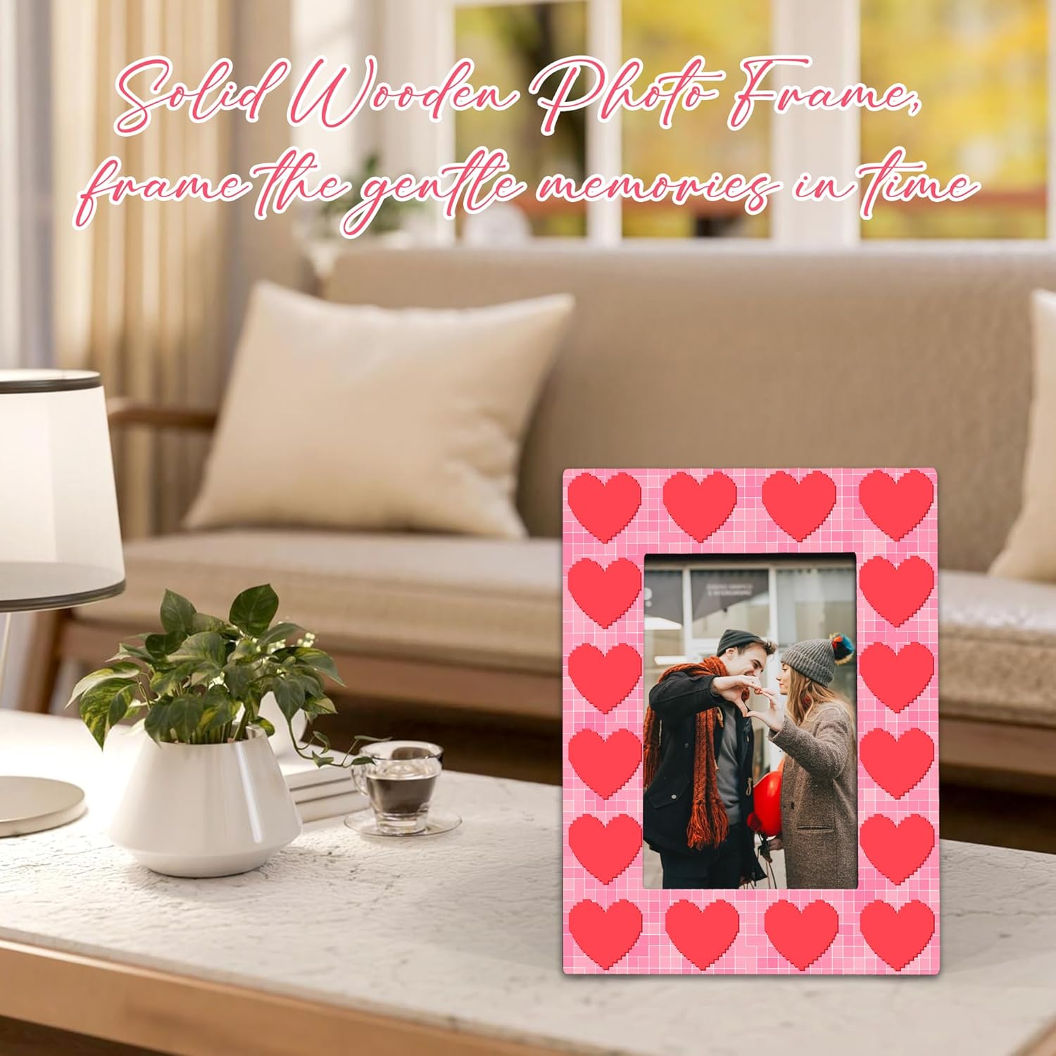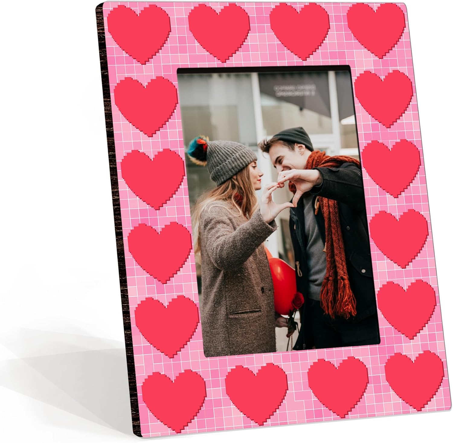 yppupetuc Valentines Day Wood Picture Frame, Red Heart Pixel Style Photo Frame, Gift For Boyfriend, Girlfriend, Husband Or Wife On Your Valentines Day Together As A Couple (4X6-Vertical)- A01