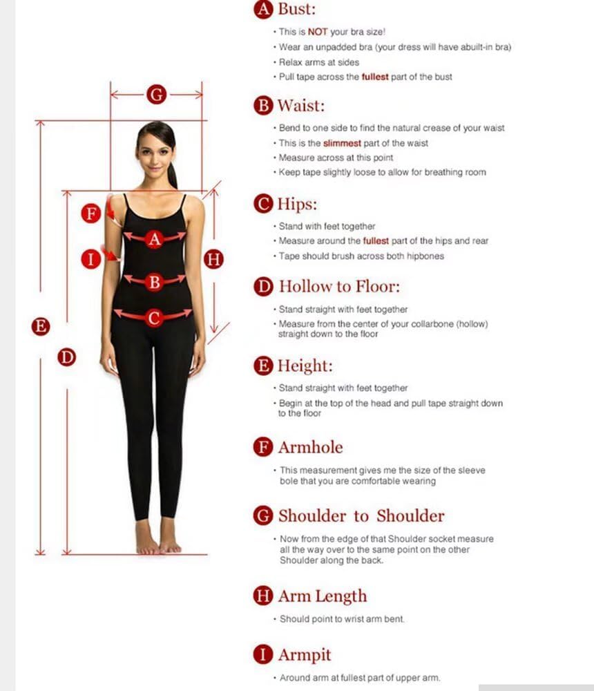 All of our dresses are handmade by experienced tailors.Our dress is above 98% similar with photo.We could not accept your return request if the dress issues are caused by yourself such as wrong choice for size or color. If you receive a defective dress or wrong size (wrong color,wrong dress),please contact us within 7 days after you receive the dress. Any other questions, please feel free contact us through email, we are always at your service.Custom for free.For Custom Made Dress, please complete the format below and offer us when you place the order.1.Full Bust _____cm.2.Waist _____ cm.3.Hips _____ cm.4.Shoulder to Shoulder ____cm.5.Hollow to floor(Shoulder to Feet without in shoes) ___ cm.6 The height of your high heel shoes: _____cm7.Phone Number______8.The date you need the dress_____Wish you a happy purchasing.