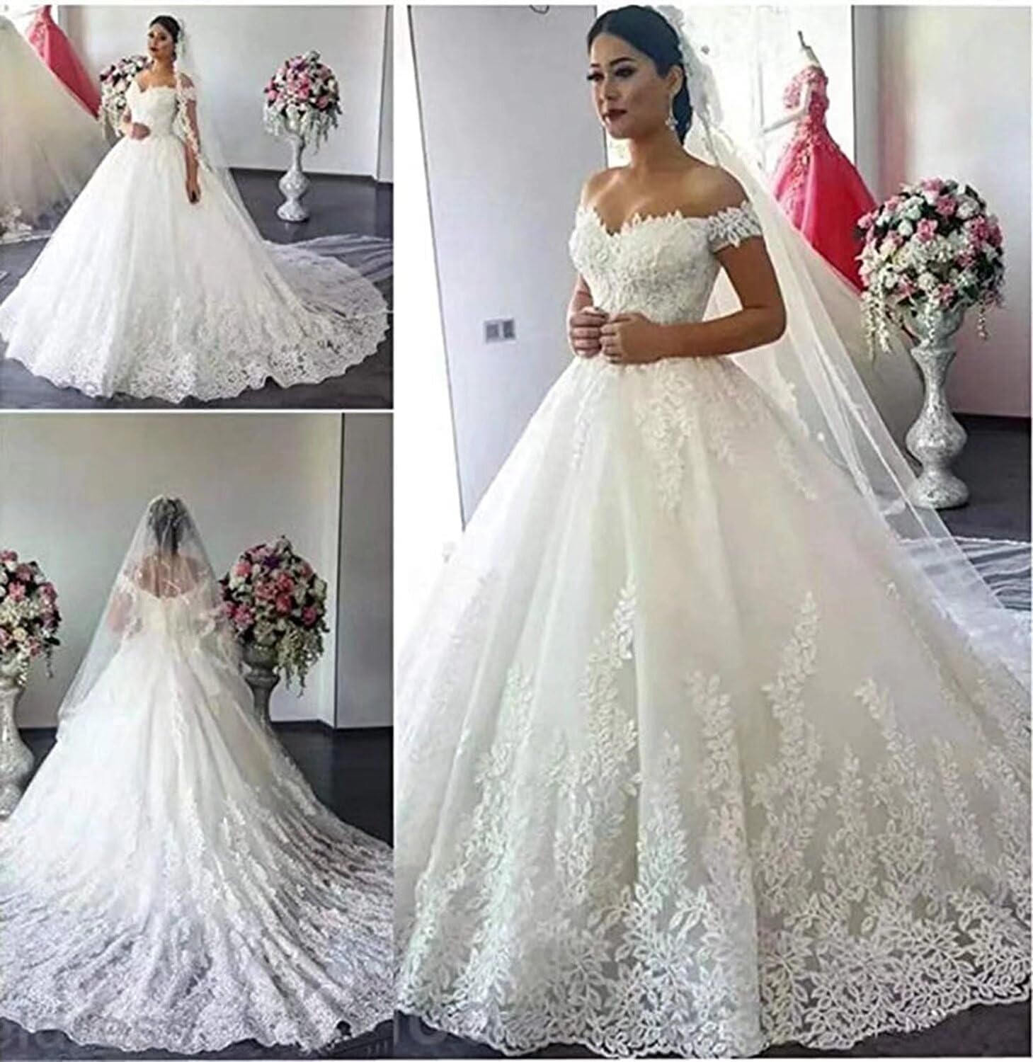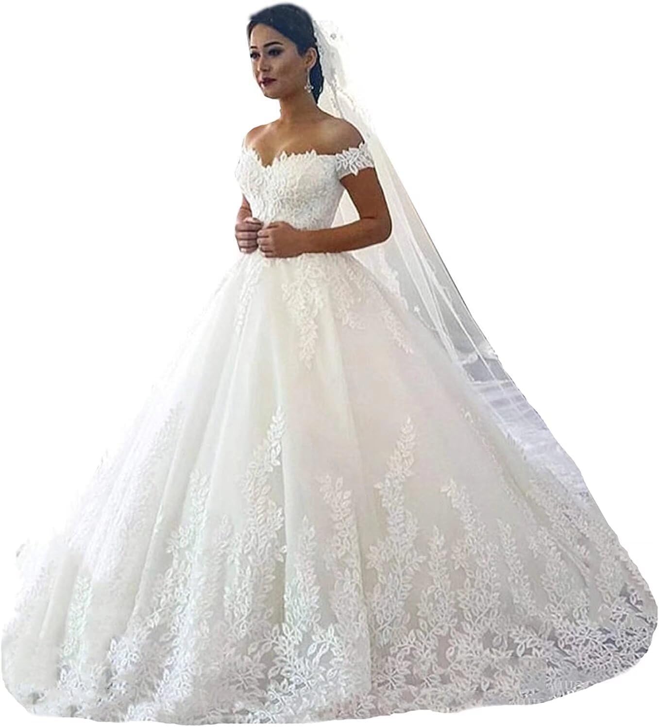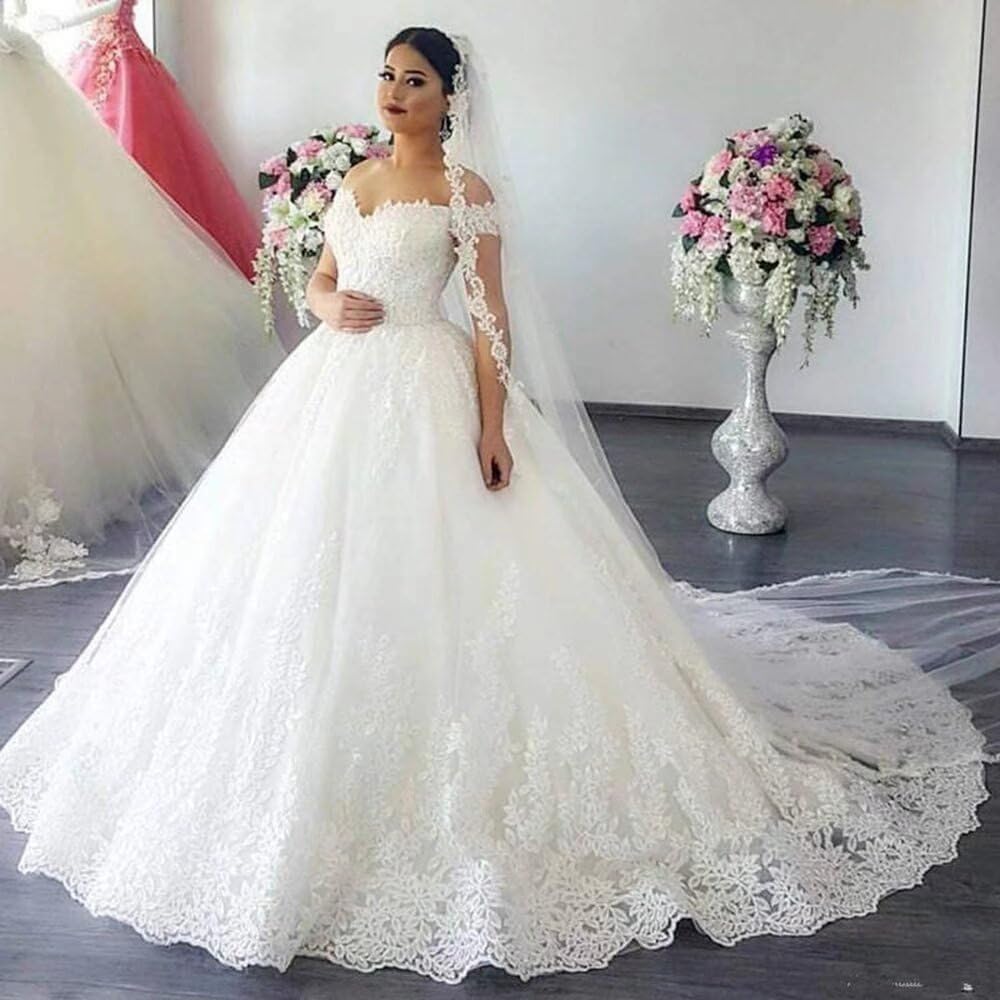 • Features: This ball gown wedding dresses for women 2021 features off shoudelr , short sleeve, sweetheart, ball gown with train, lace up back, you will receive many compliments on this beautiful off shoulder wedding dress with sleeve!