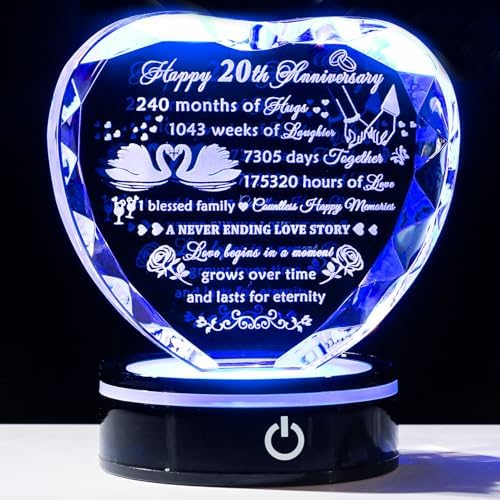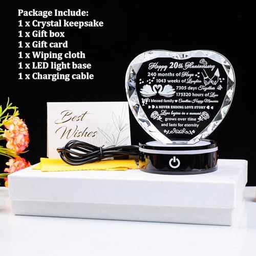 - 20th Wedding Anniversary Gifts for Couples: The 20th wedding anniversary is an important milestone in life, and is worth celebrating. If you are looking for a gift to celebrate your 20th wedding anniversary, this crystal heart engraved with love quotes will be a great choice for you