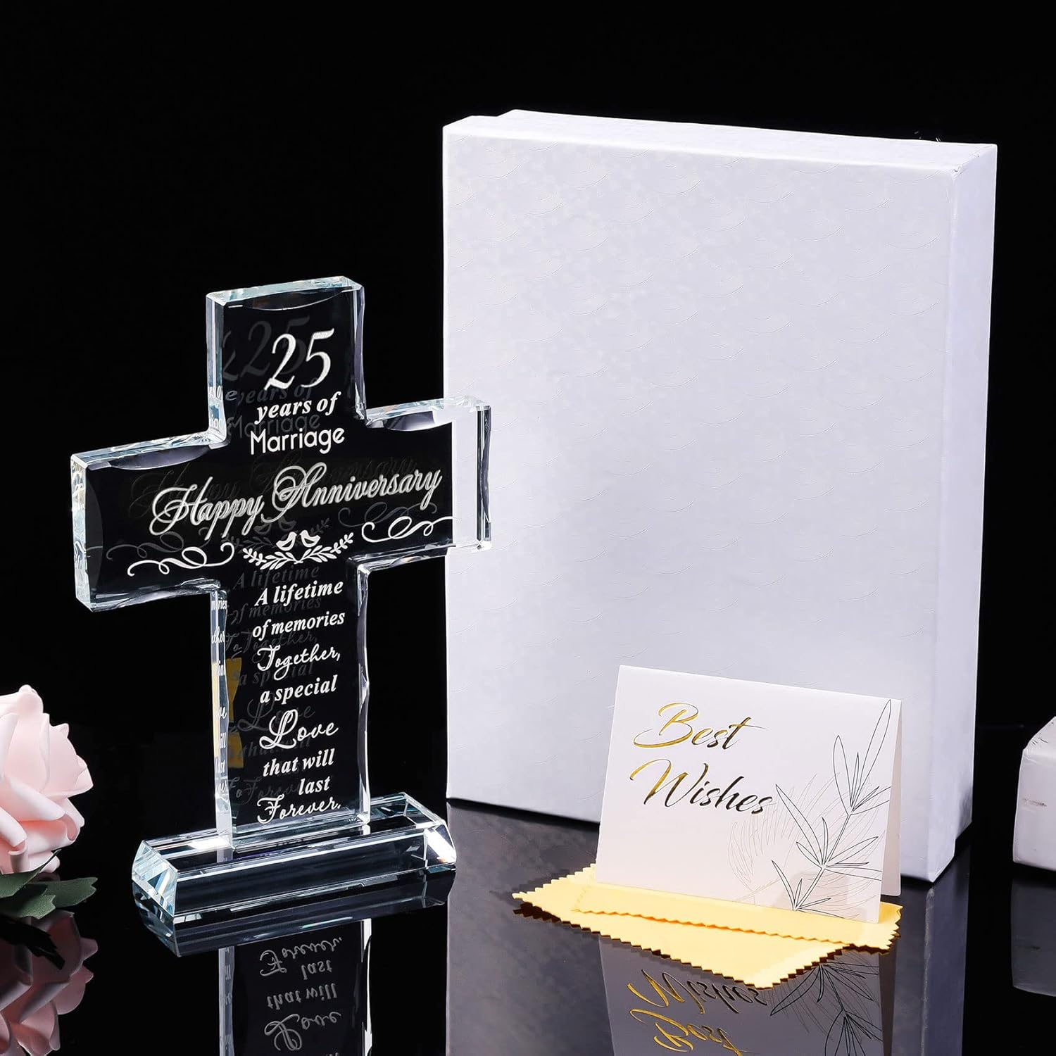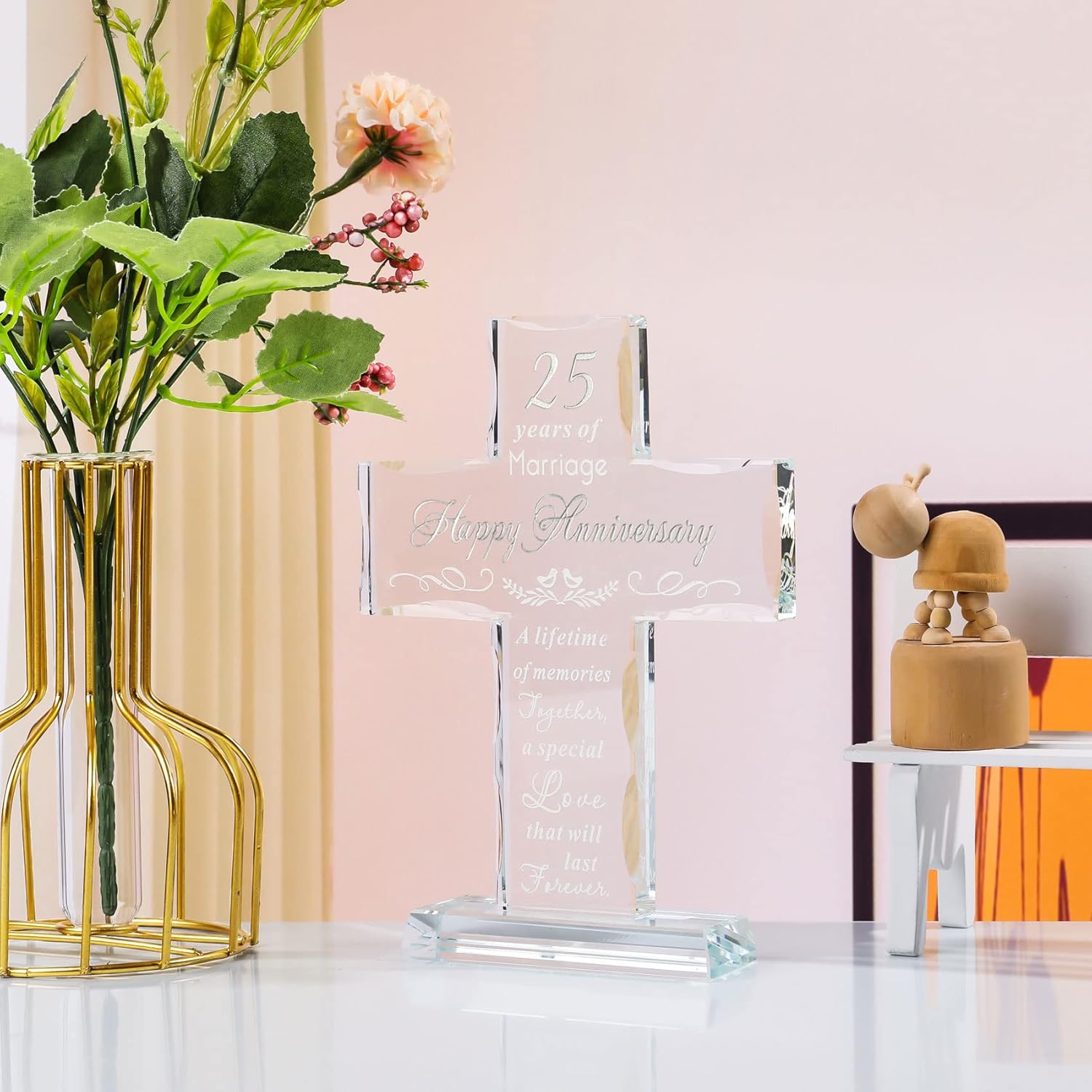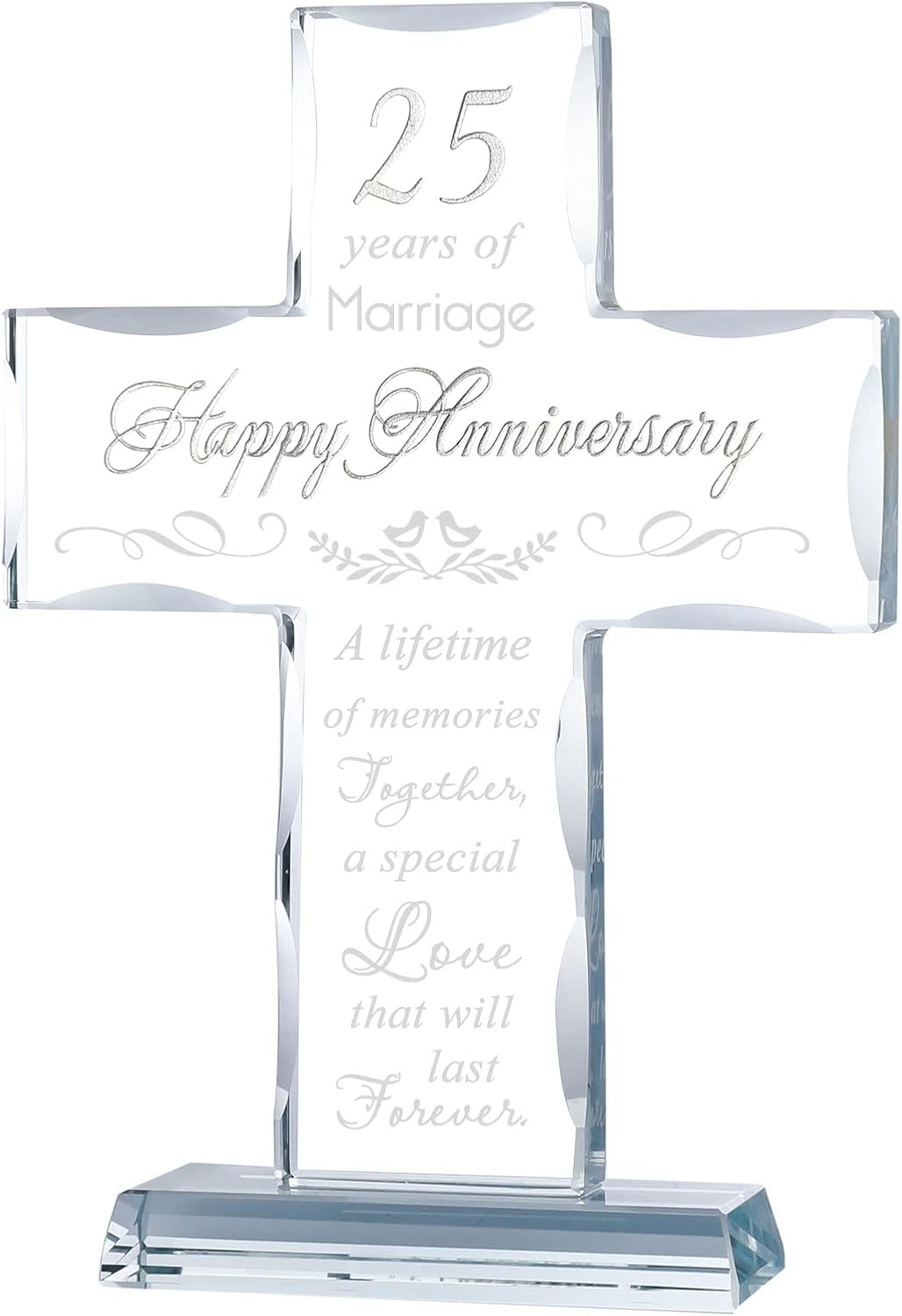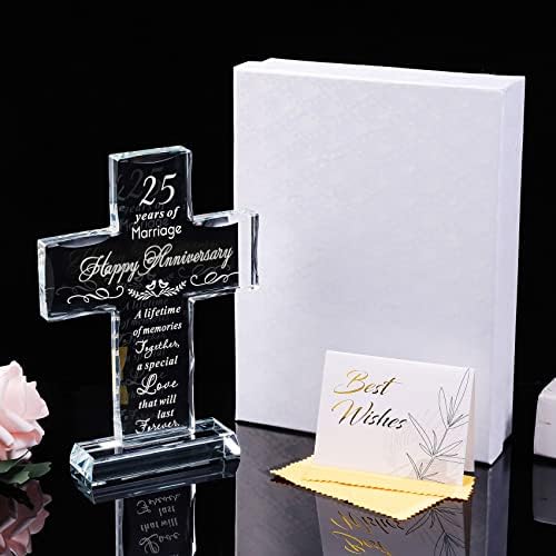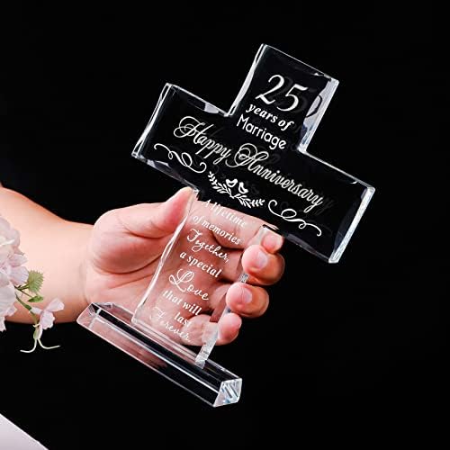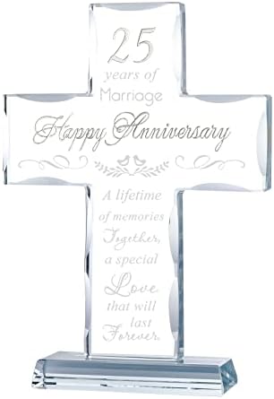 - Happy 25th Anniversary Gifts: 25th anniversary is a milestone wedding anniversary, a quarter of a century in love with someone is worth celebrating, this glass cross is perfect as a gift to commemorate 25 years of glorious marriage, and last forever
