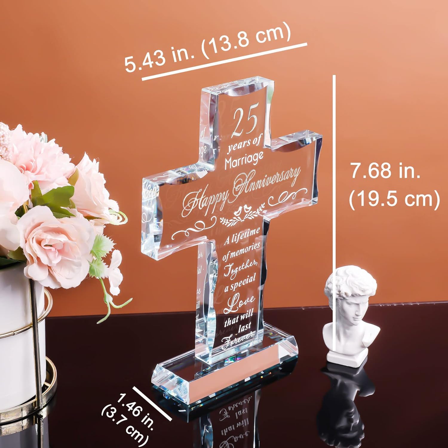 - 25th Anniversary Decoration: The cross comes with its own base and can be placed independently without additional stand, the size is suitable to decorate anywhere in the home, such as living room, bookshelf, desk, bedside table. Size: 7.68 x 5.43 x1.46 in.